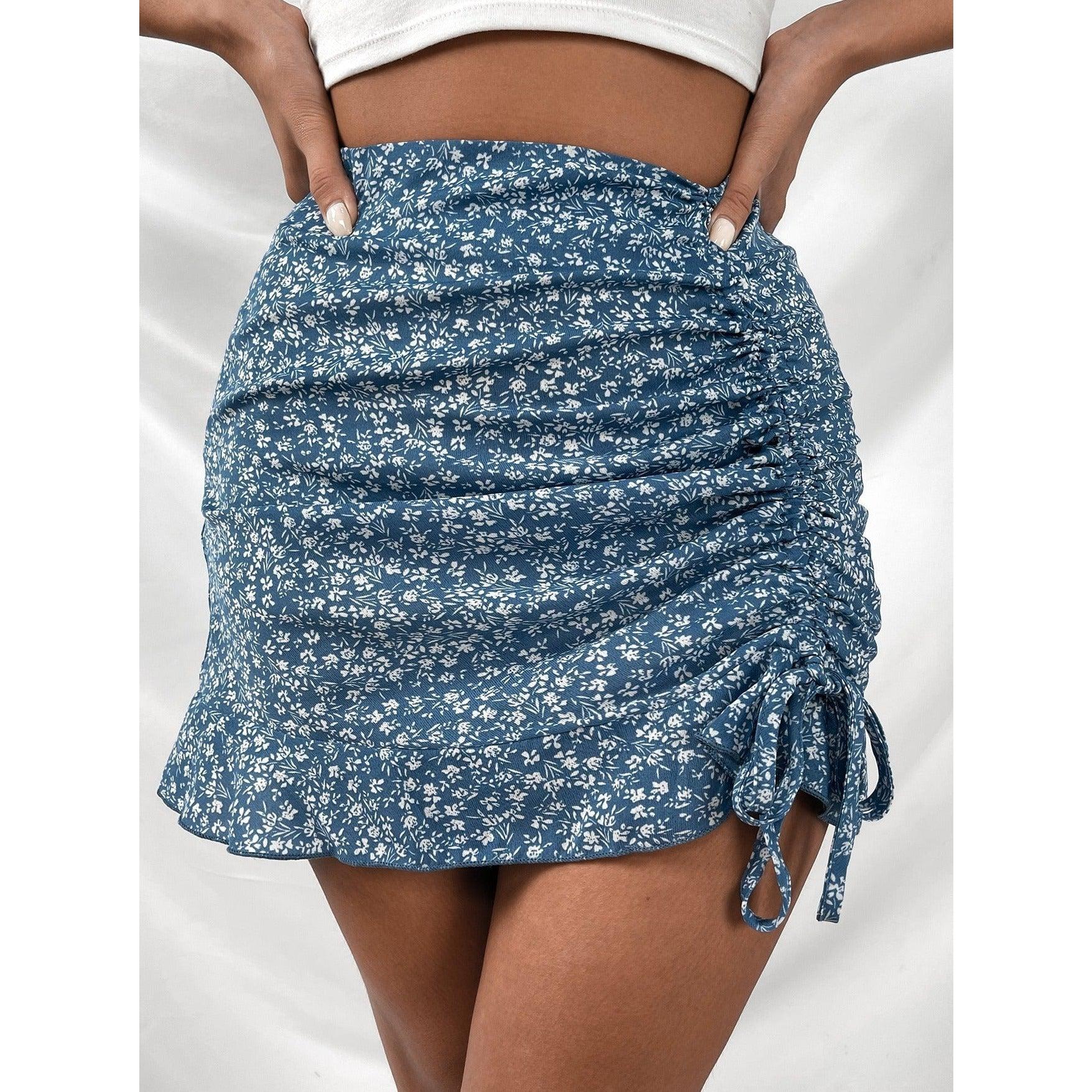 Jupe Fleurie Minimaliste Bleue