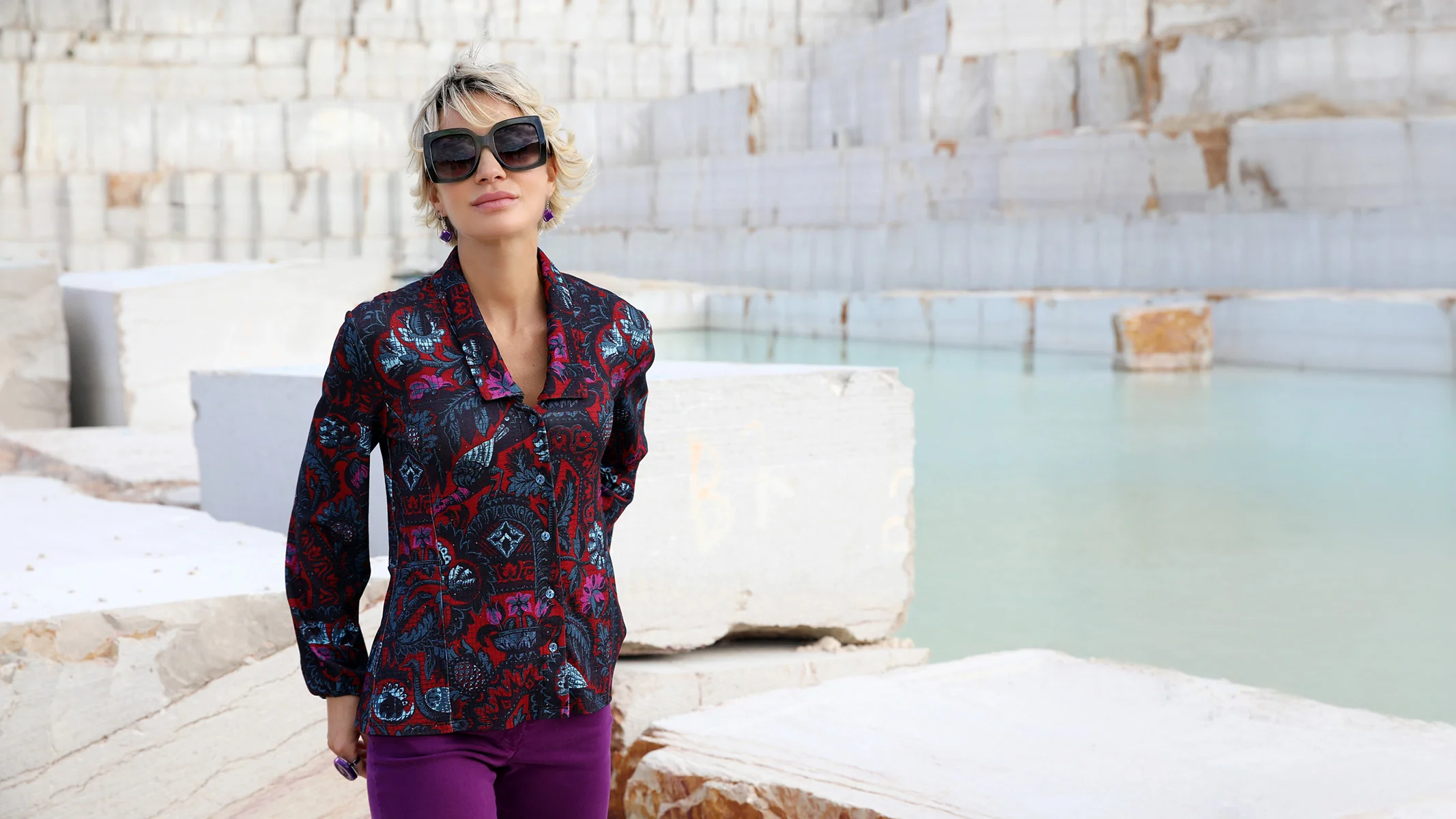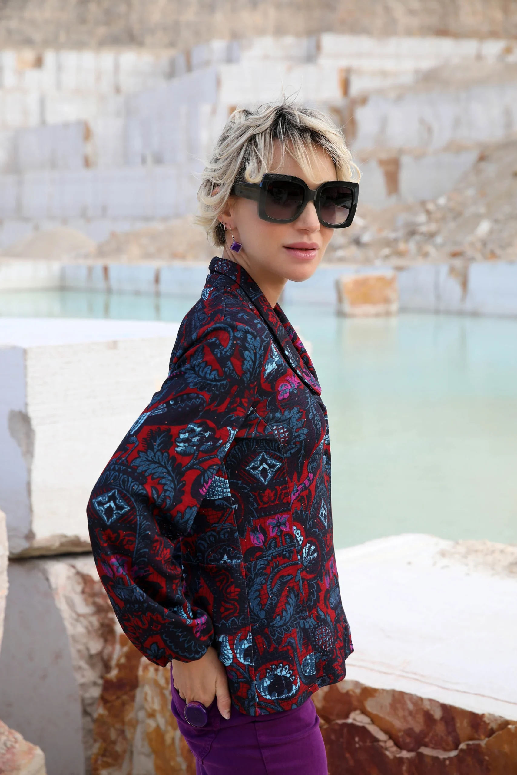 • Imprimé cassis et bleu assorti aux permanents
