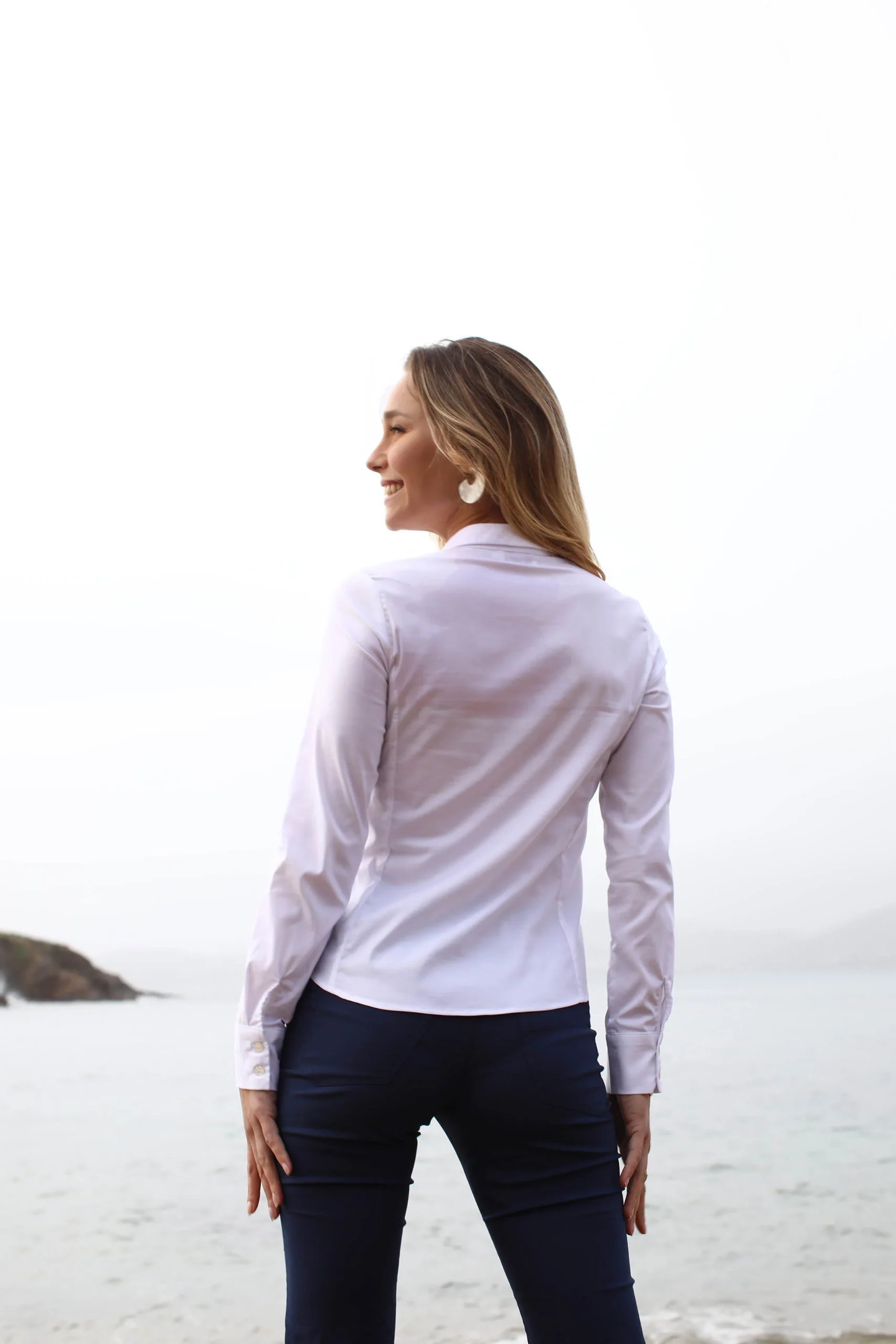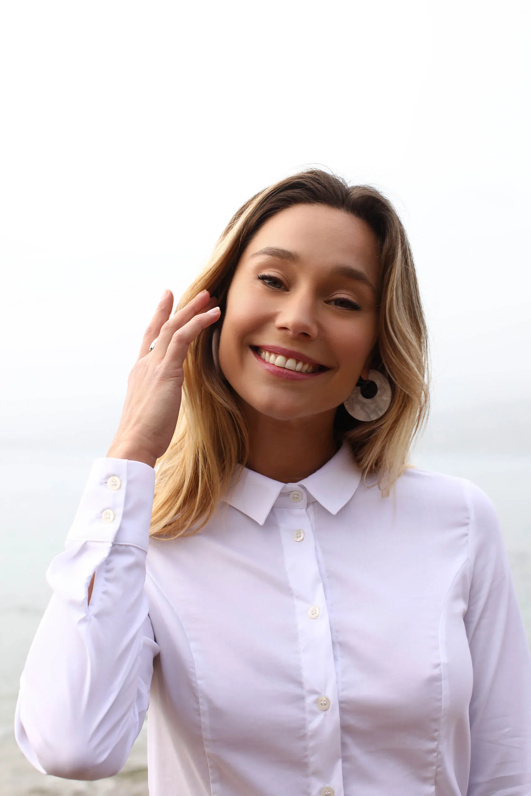 Une chemise en popeline blanche, élégante et intemporelle Conçue pour s’accorder facilement avec toutes les collections Une coupe mettant en valeur la silhouette Composition : 68%coton, 29% polyamide, 3% élasthanne