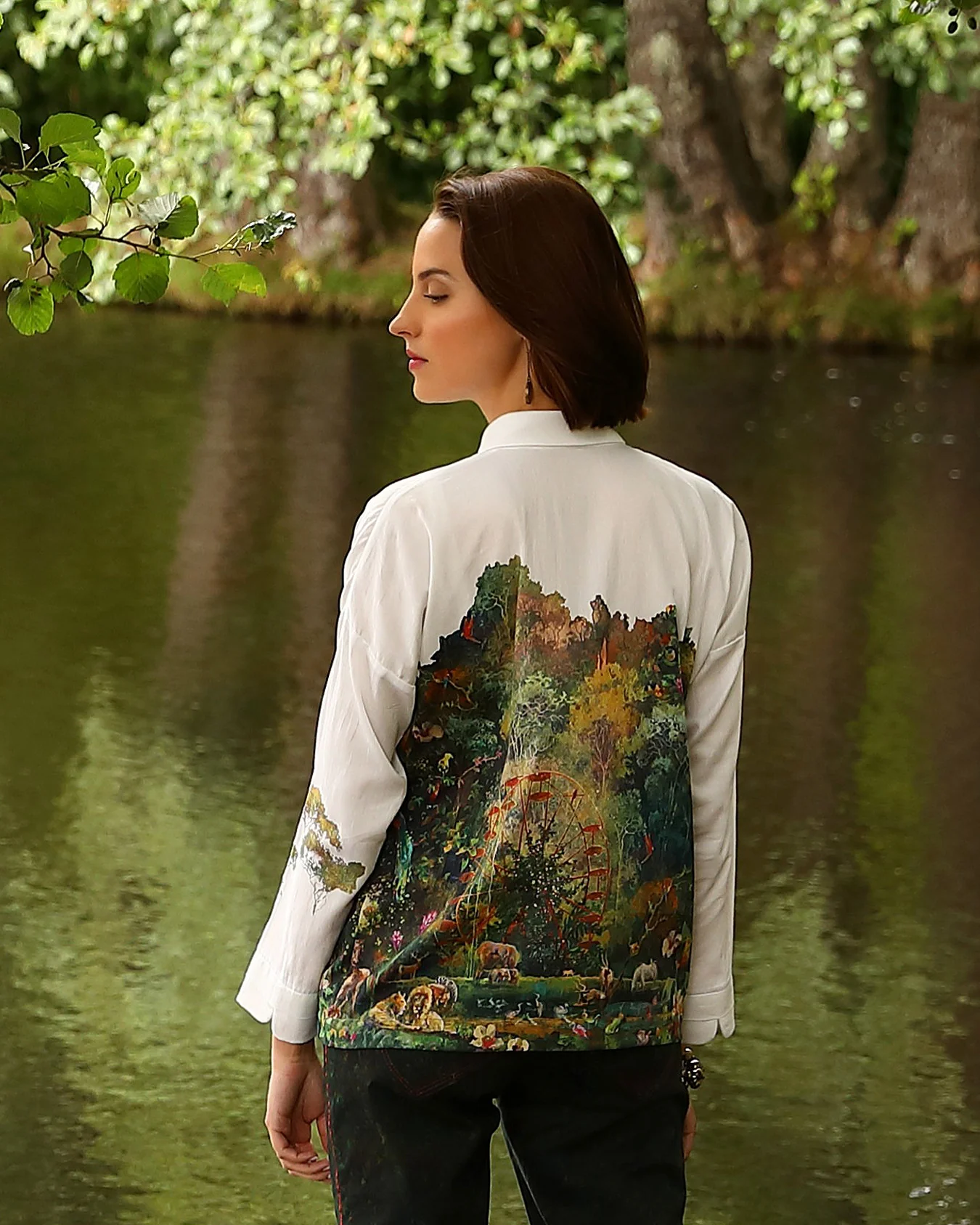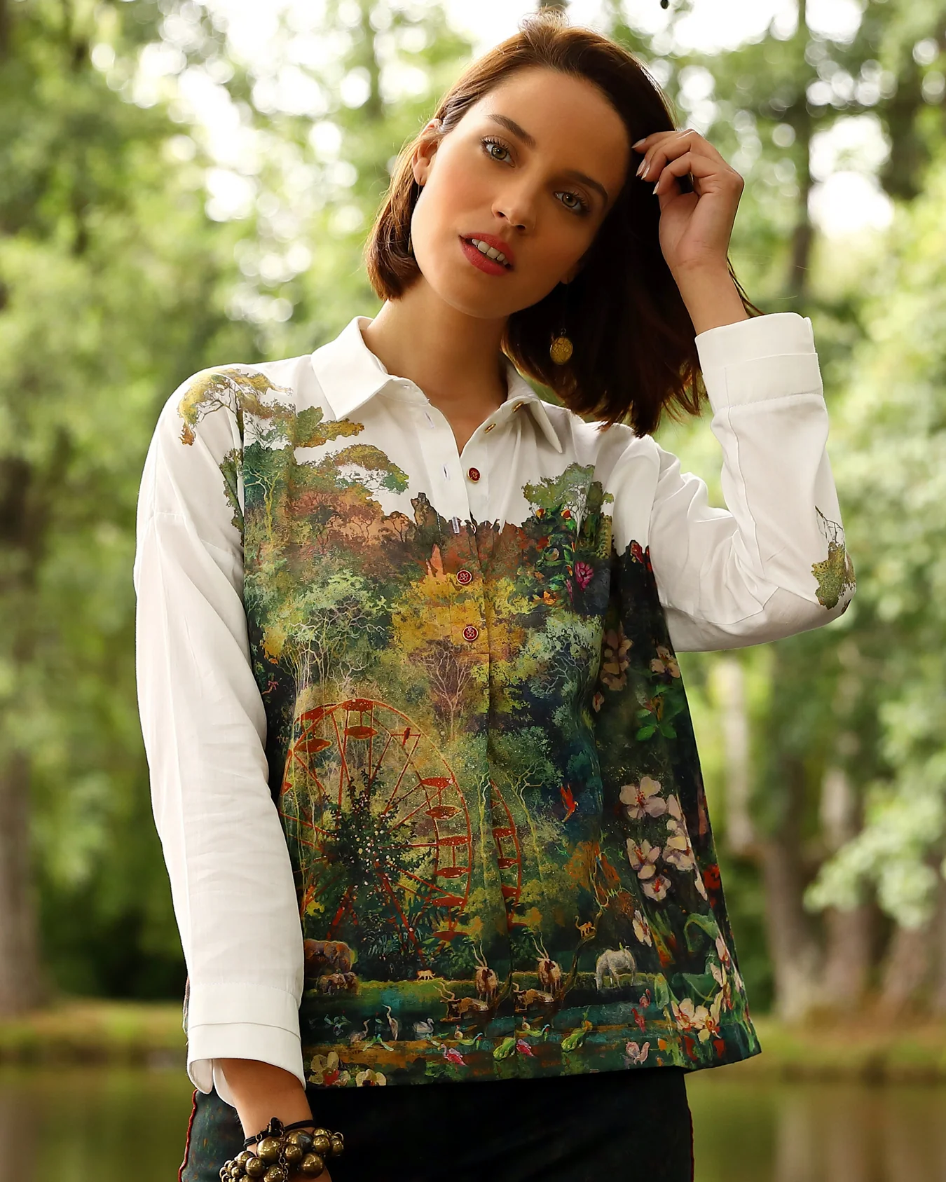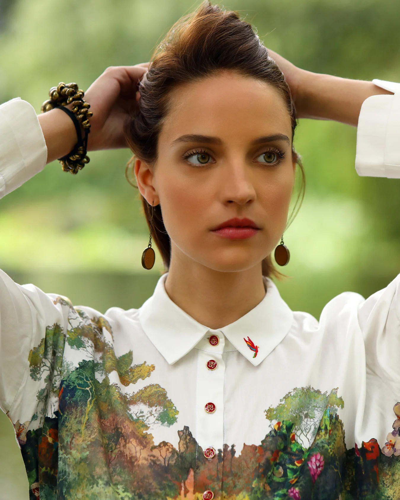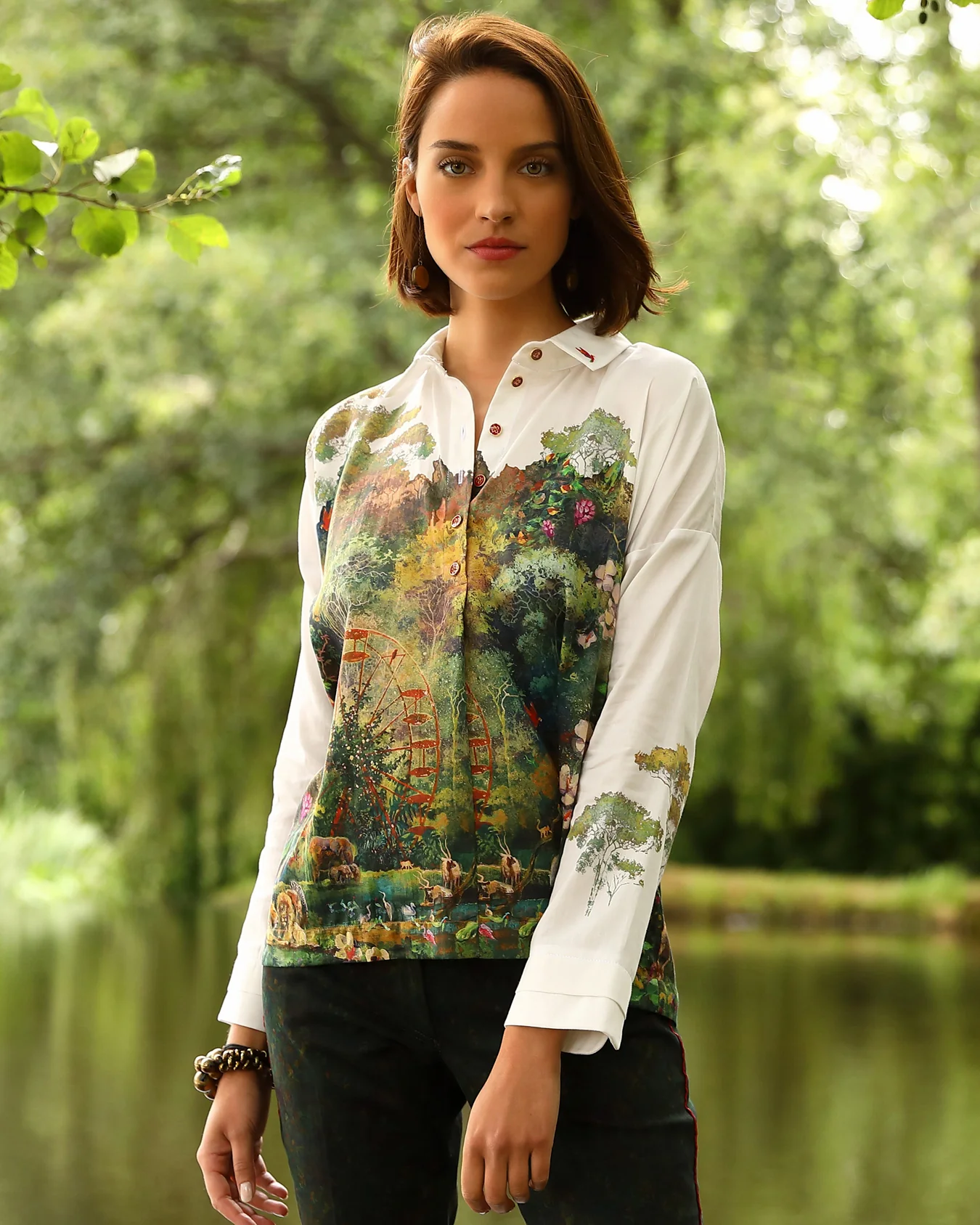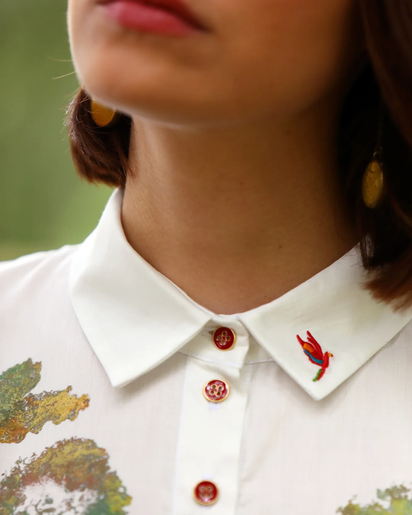 Chemise blanche aux motifs placés Un toucher doux et un tombé remarquable Double poignet délicat et gracieux Composition : 100% coton