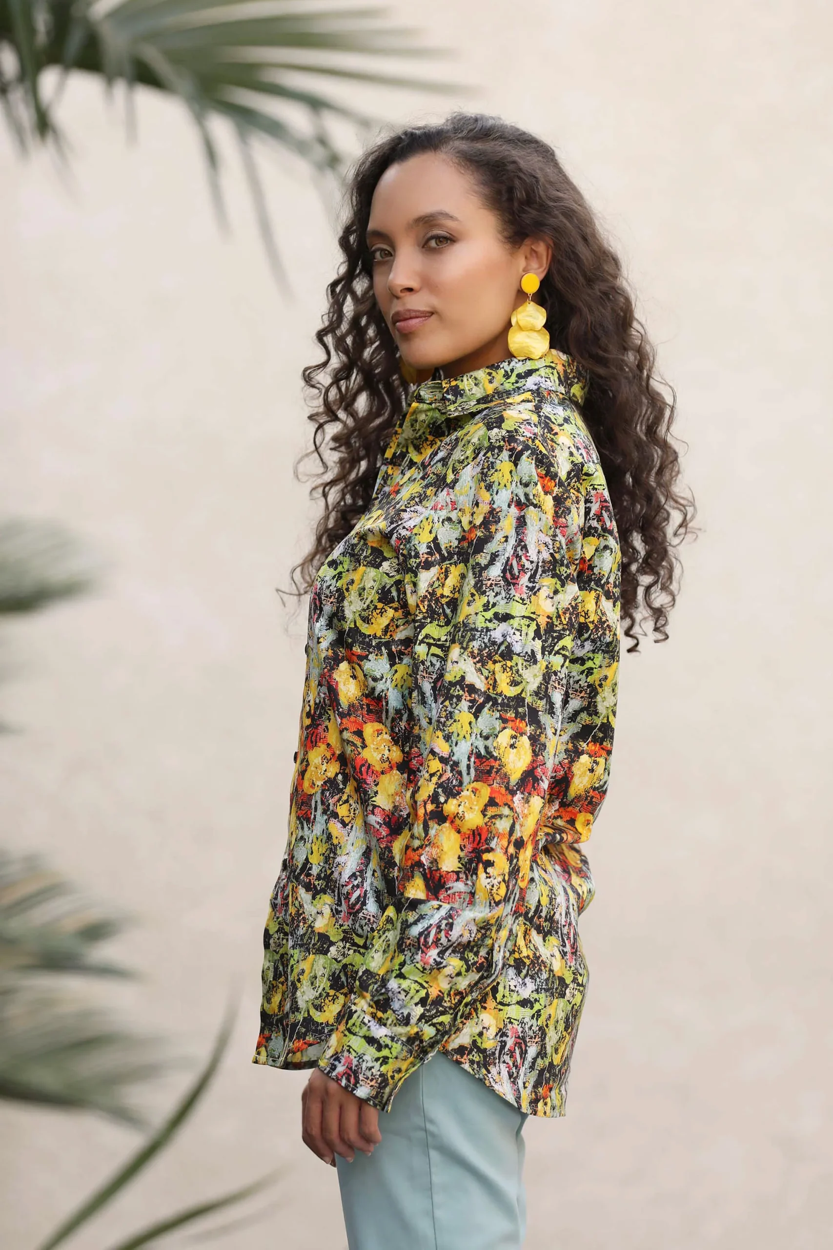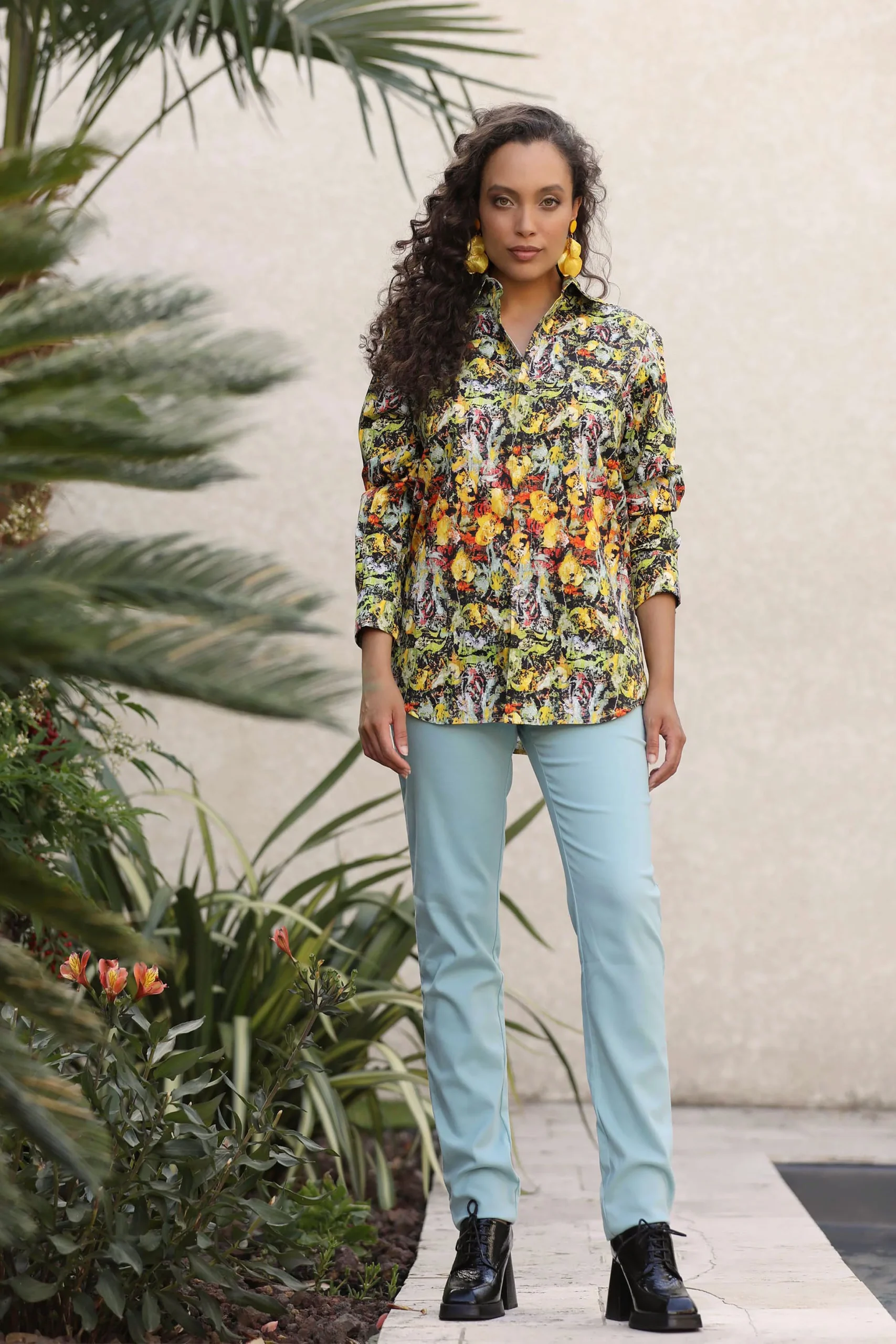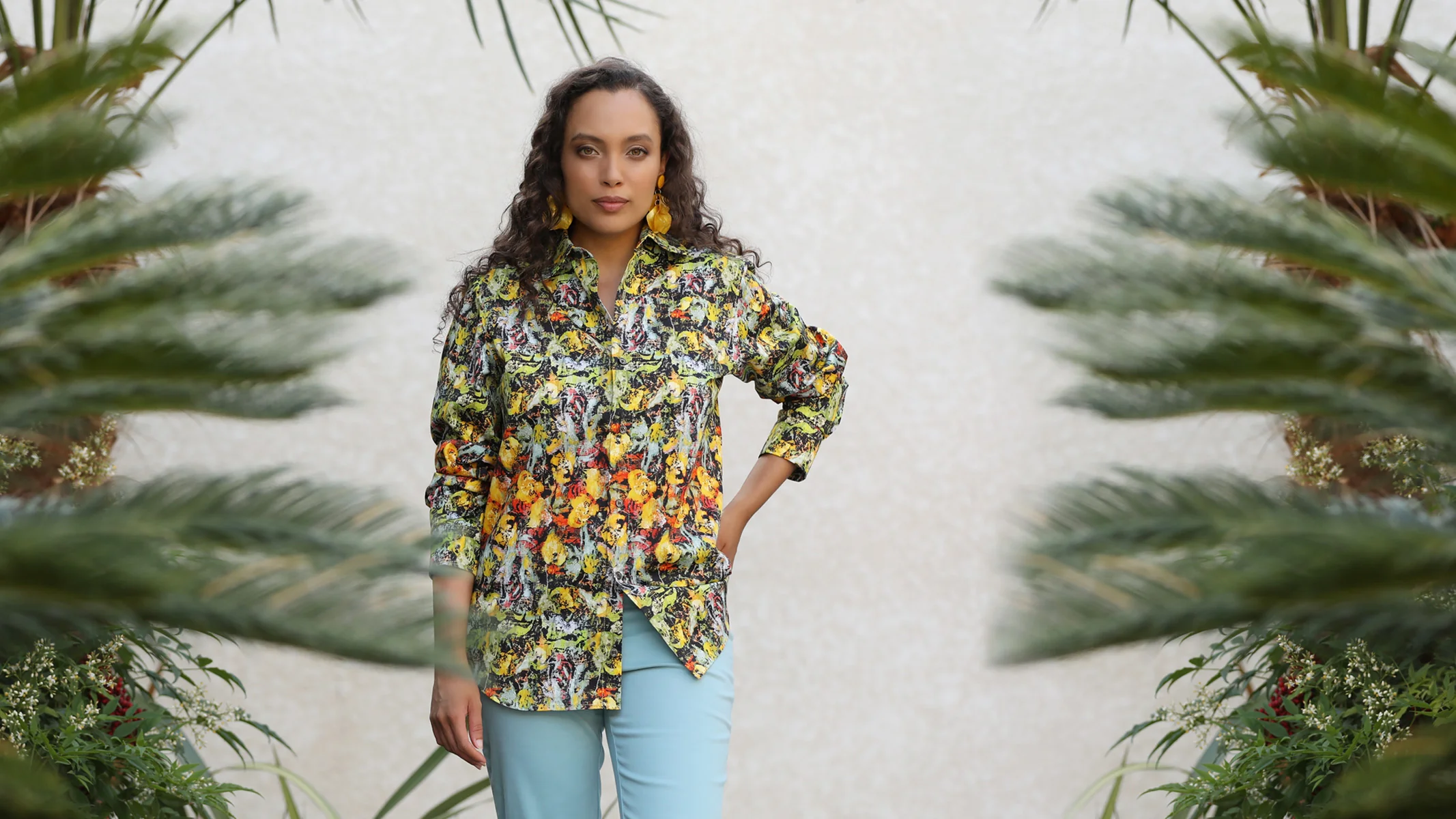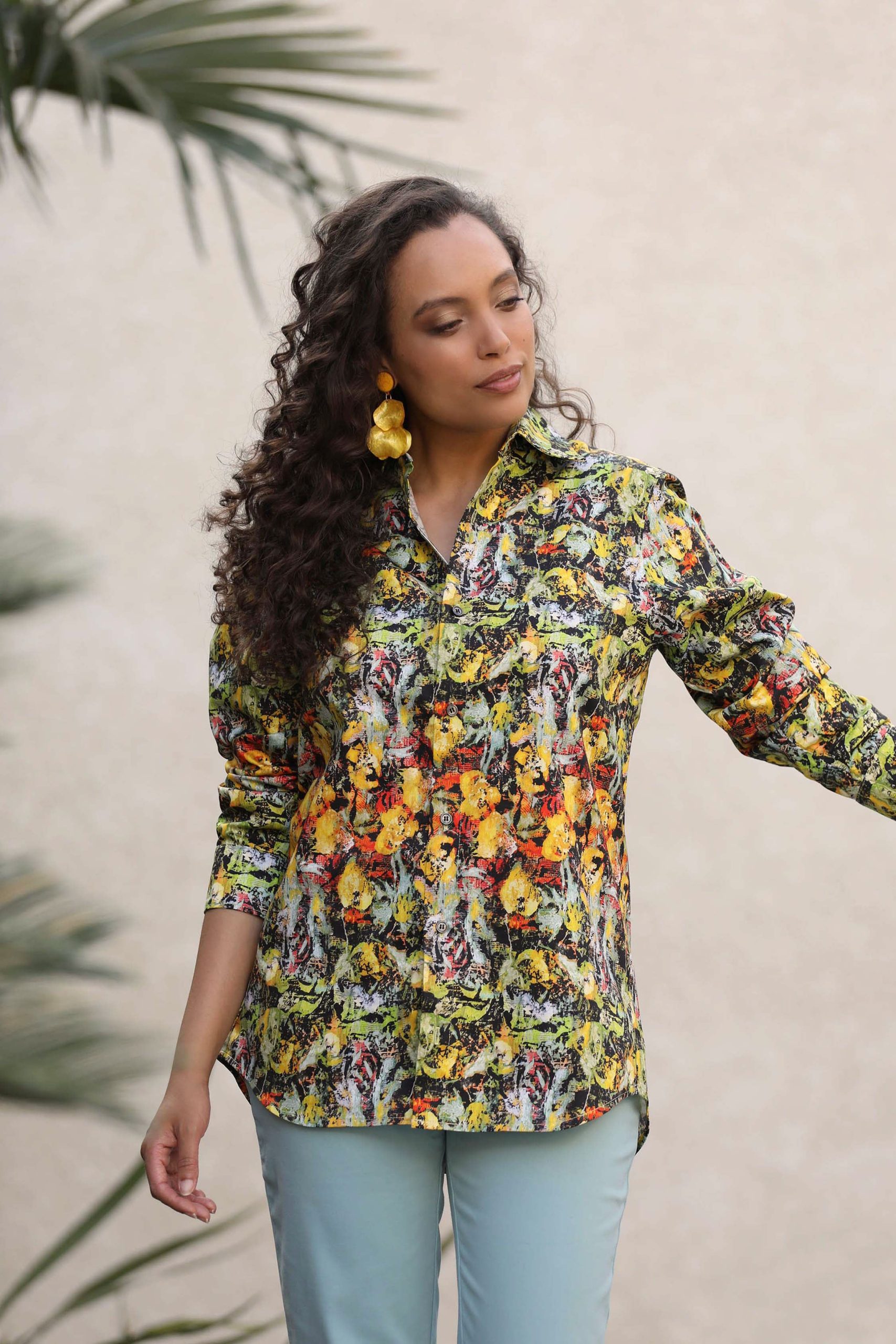 Coupe droite esprit chemise d’homme, ample et confortable Popeline 100% coton douce et respirante Imprimé intégral d’après l’œuvre de Florence Gosset Composition : 100% coton