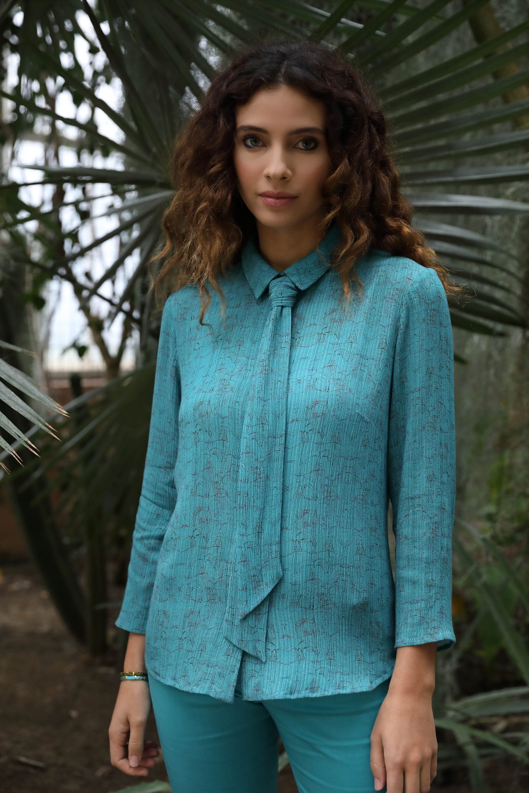 Une chemise avec une cravate amovible Une pièce très moderne Un tissu en crépon faux uni Composition : 100% viscose