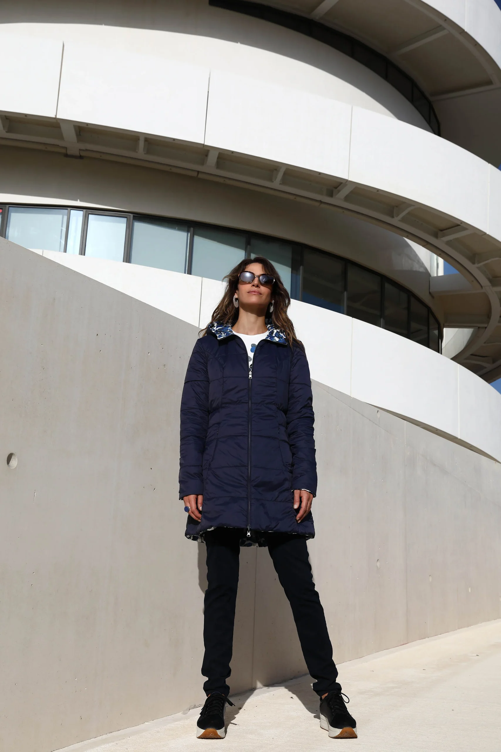 Une pièce emblématique d’un vestiaire en hiver Une doudoune réversible avec une face unie et une face imprimée Un vêtement de protection contre le froid grâce à sa double couche de ouate Composition imprimé : 100% polyester Composition uni : 100% polyamide