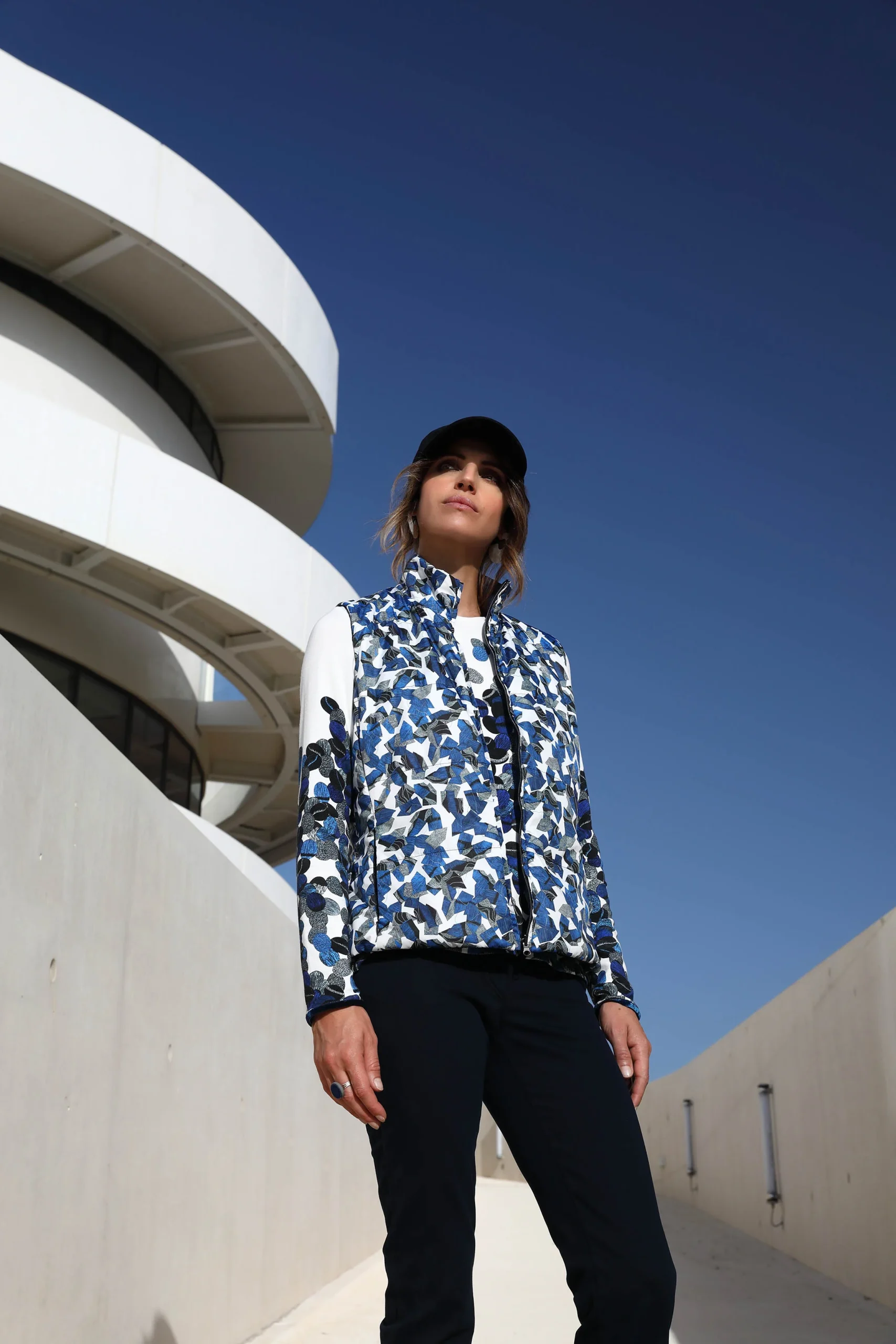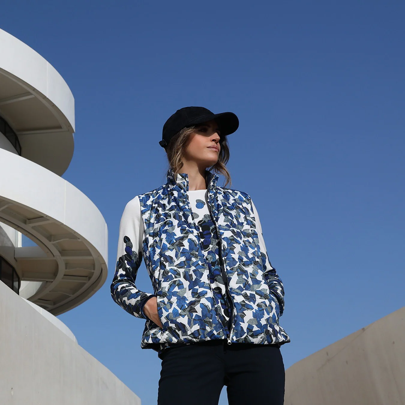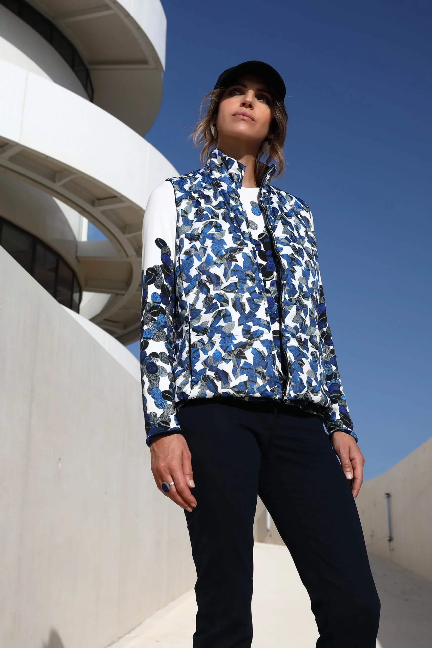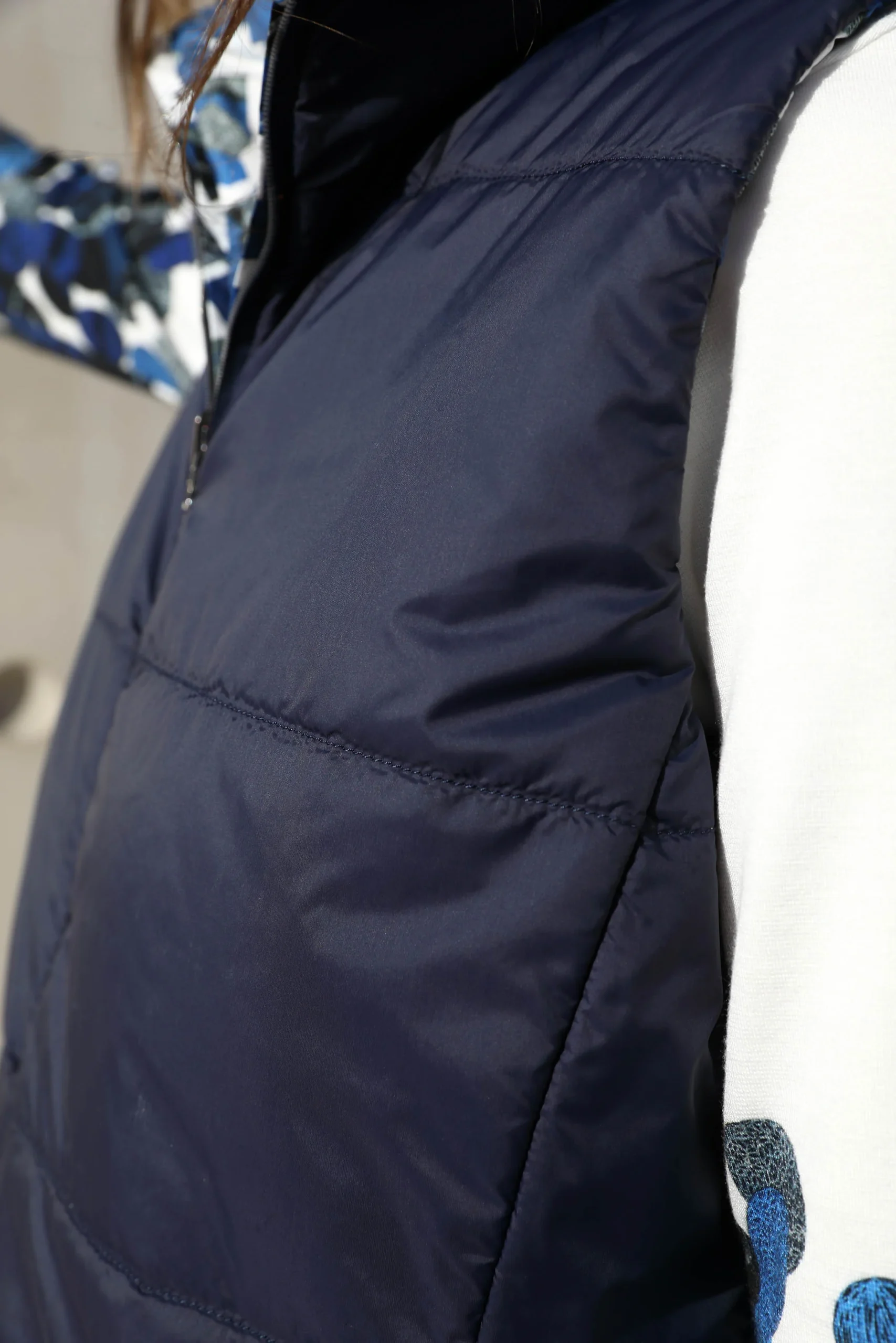 - Un doudoune sans manches réversible avec une face unie et une face imprimée