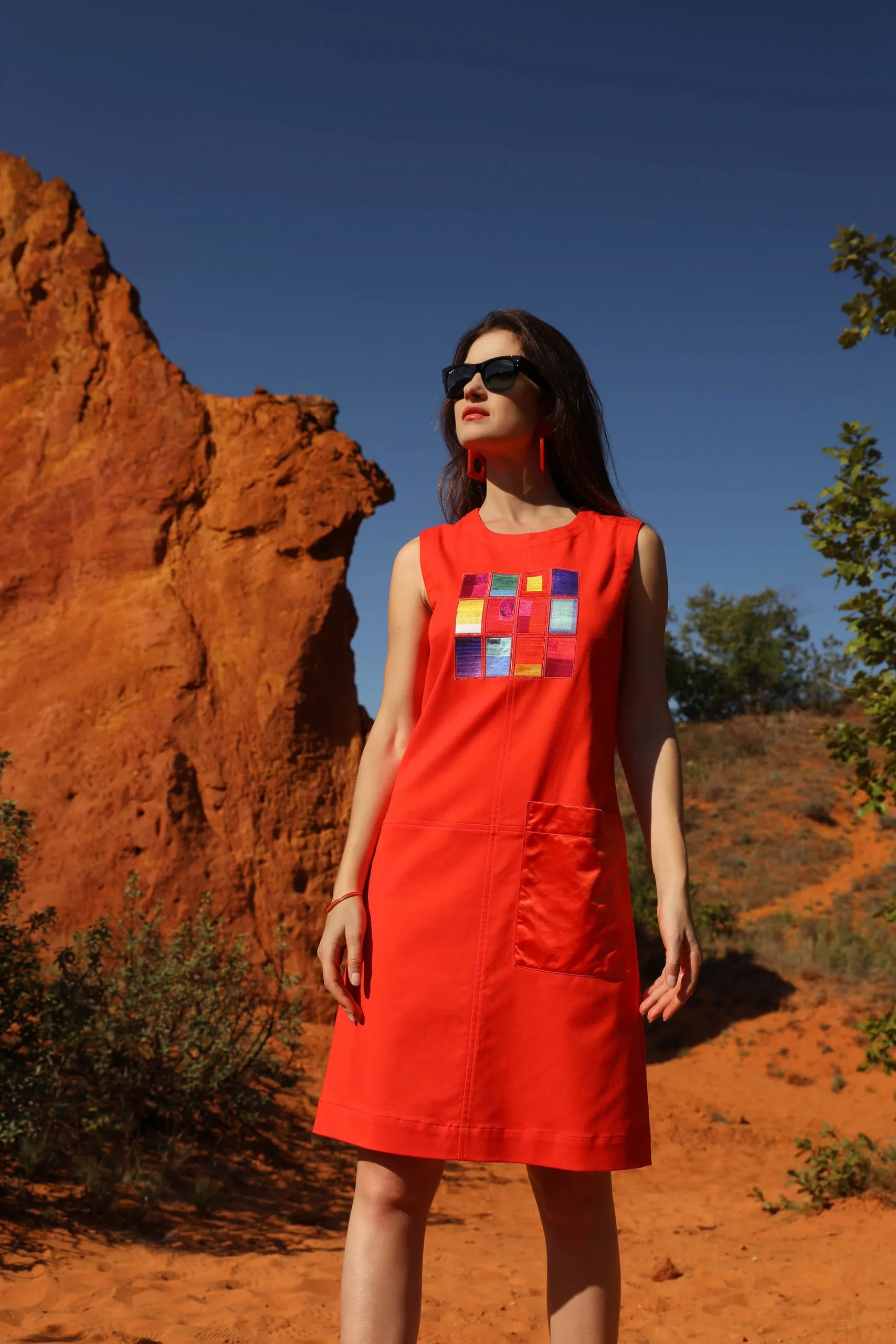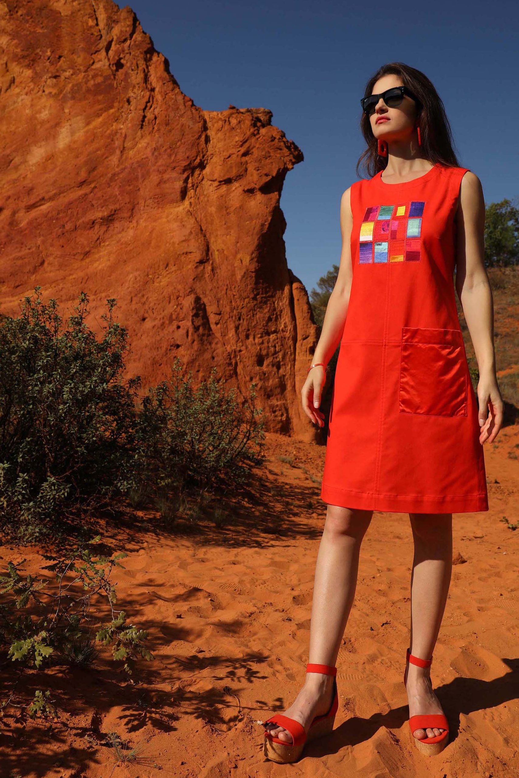 Une matière structurée et confortable Une coupe dans un esprit de robe trapèze Une broderie qui habille le devant de la robe Composition : 97% coton, 3% élasthanne