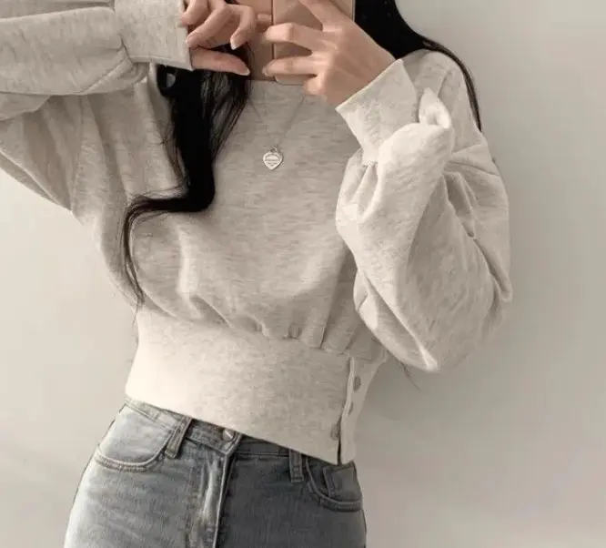 Ce sweatshirt femme séduit par son design moderne et minimaliste, inspiré du style européen. Sa coupe légèrement cropped et sa taille resserrée mettent la silhouette en valeur, tandis que les manches bouffantes apportent une touche tendance et féminine. Confectionné en polyester doux, il offre un confort agréable au quotidien. Facile à associer avec un jean taille haute ou un pantalon ajusté, ce sweat est idéal pour un look casual chic, parfait pour le travail comme pour les sorties. Disponible en gris clair et gris foncé, il devient une pièce essentielle du dressing féminin.