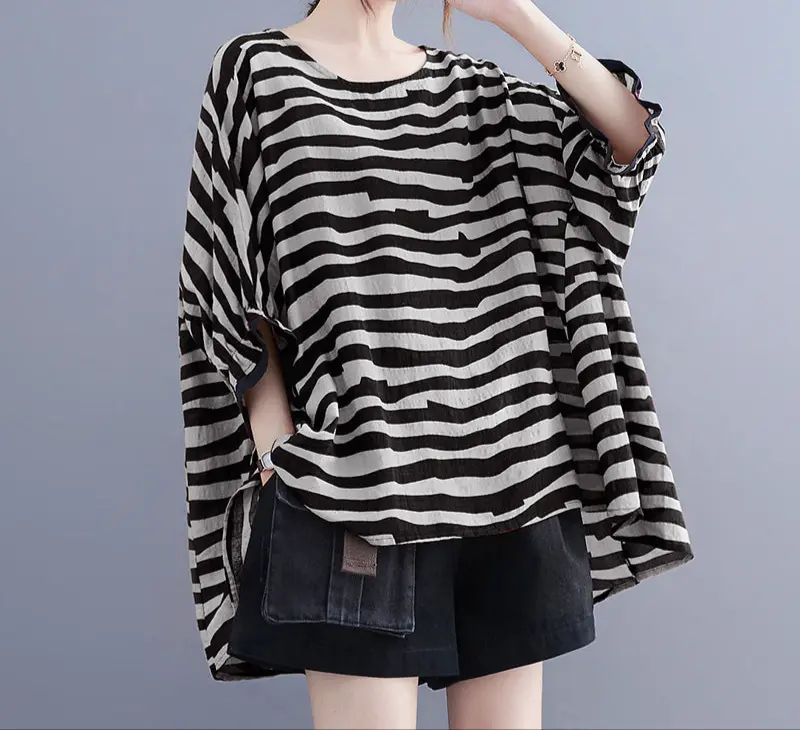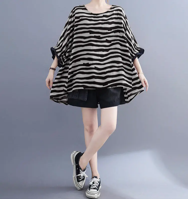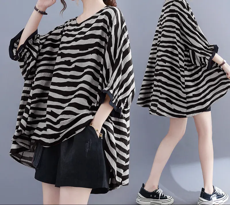 Apportez une touche d’élégance vintage à votre tenue avec ce top ample à rayures. Confortable et stylé, il s’adapte parfaitement aux grandes tailles grâce à sa coupe fluide et à son tissu 100% coton respirant.