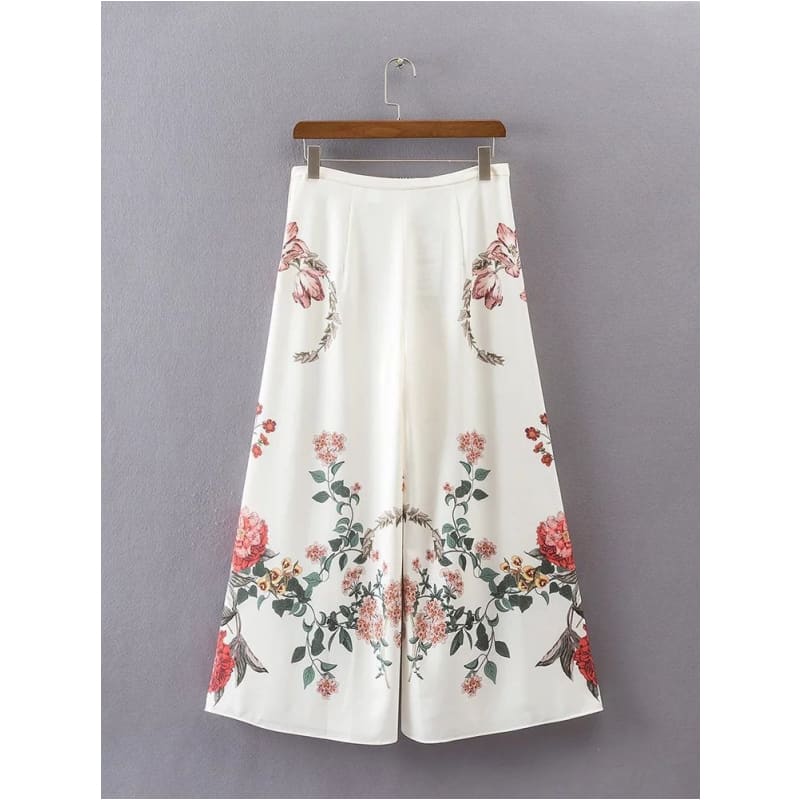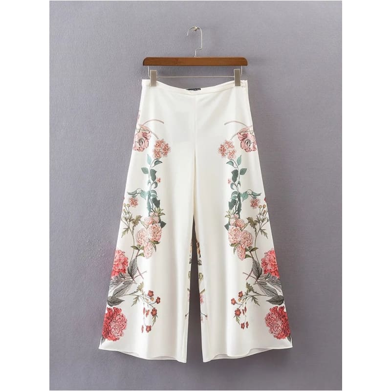 Pantalon à la coupe évasée. Un confort inégalable dans un tissu fluide et fleuri sur fond clair. On l’aime pour toutes ses qualités !