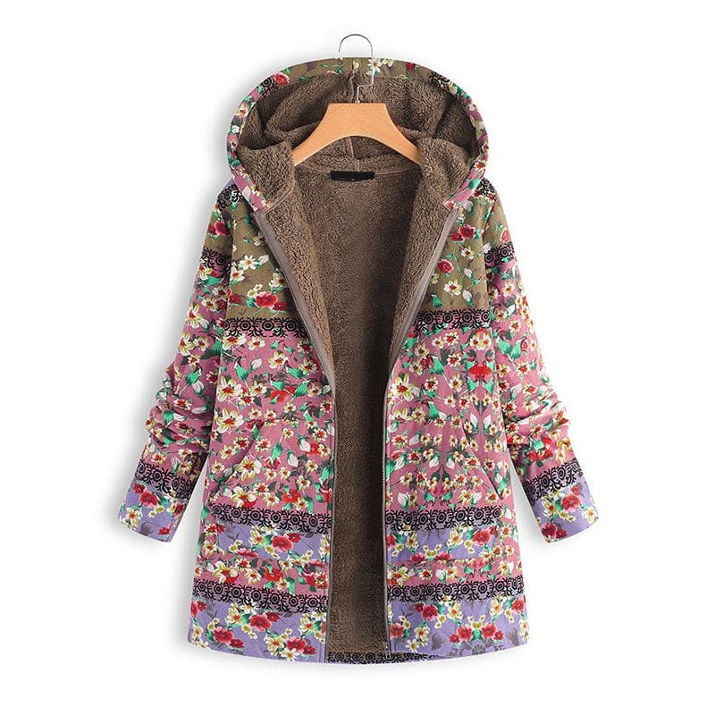 Motifs à fleurs pour ce manteau à capuche doublé. Choix entre trois couleurs. Avec sa fermeture zip et ses grandes poches appliquées, il sera votre meilleur ami lorsque vous devrez sortir de chez vous par temps froid !