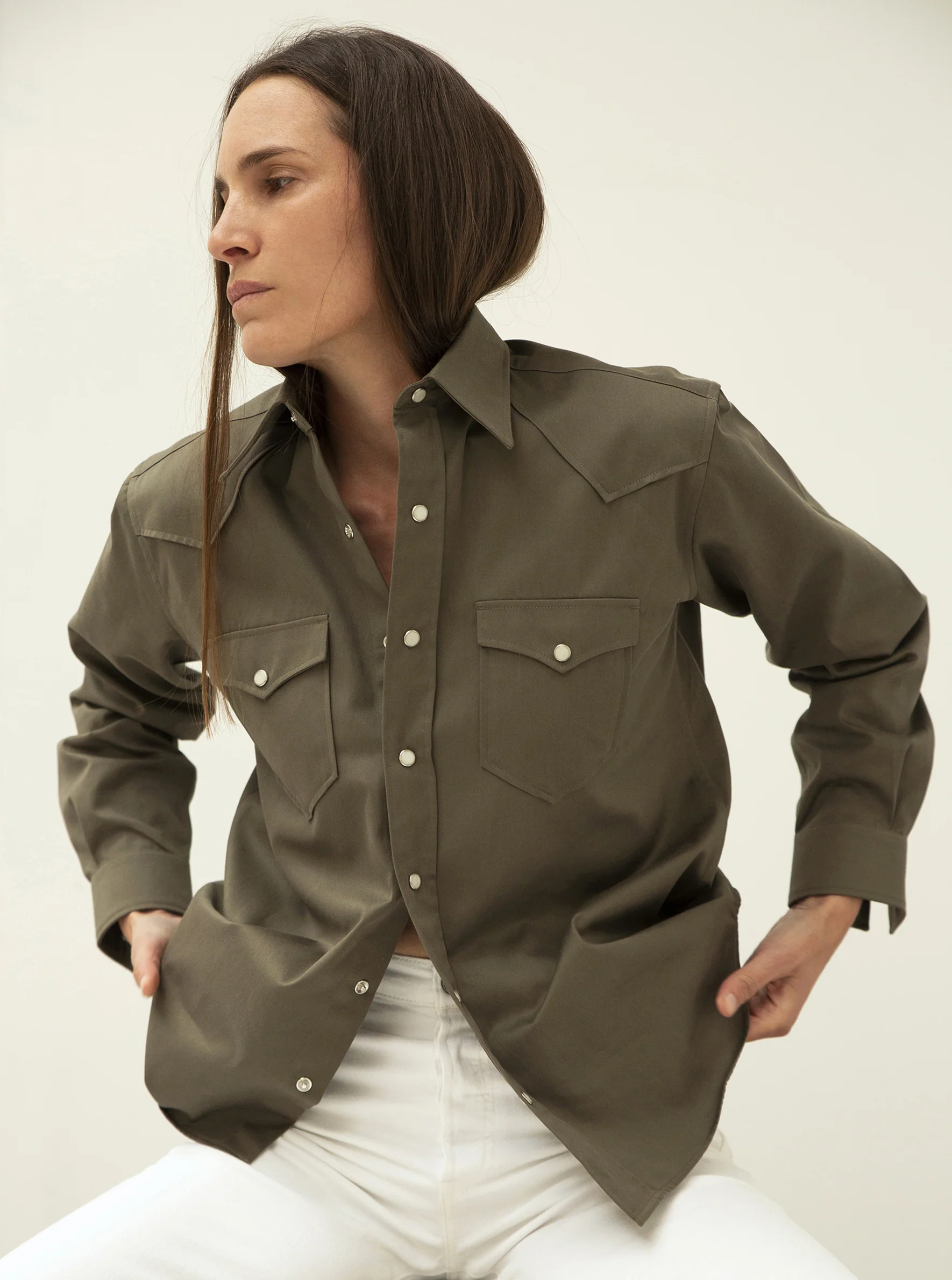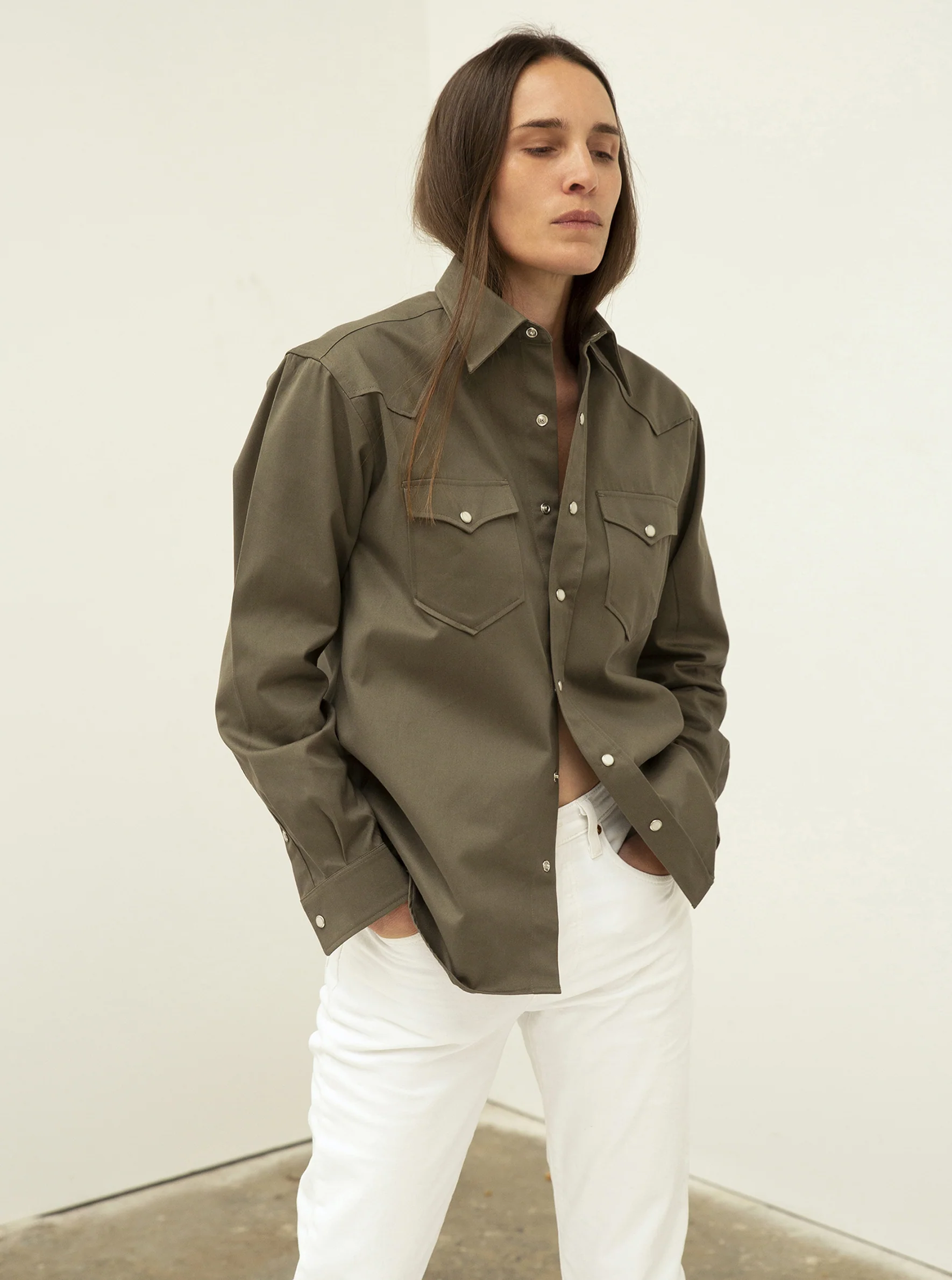 Plongez dans l’authenticité du style western avec cette chemise unisexe aux finitions soignées et à la coupe droite légèrement oversize.