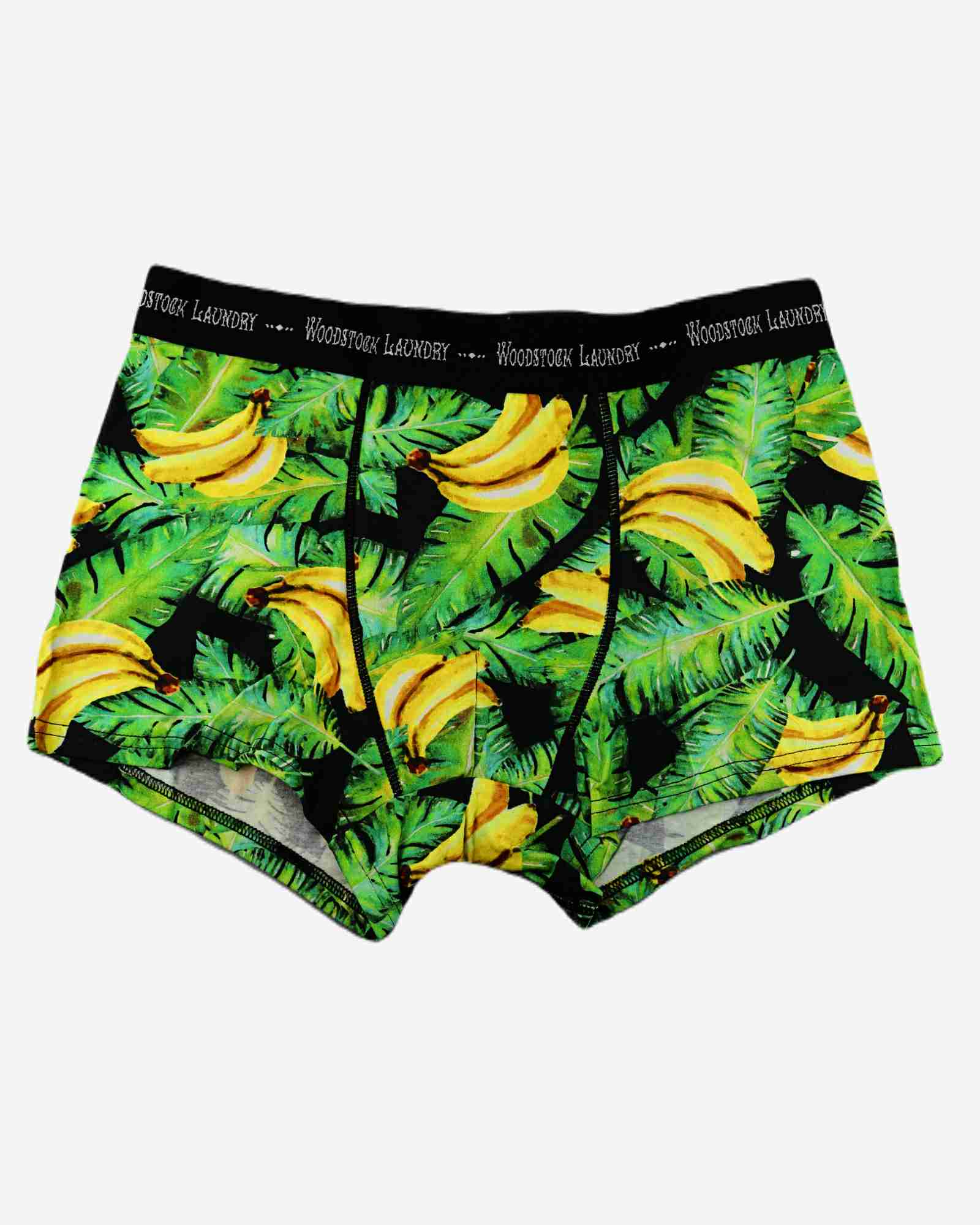 Bananas & Jungle Leaves – A vivid and bold design, not for the faint-hearted! Features bananas artfully juxtaposed against lush jungle leaves.