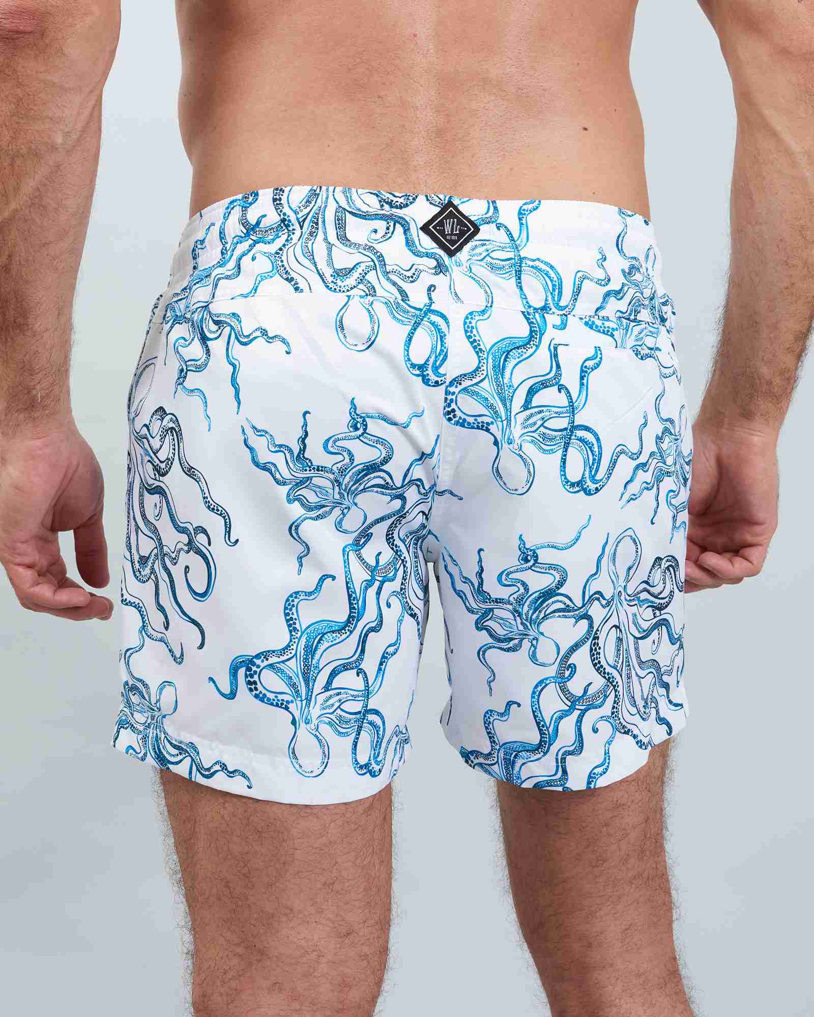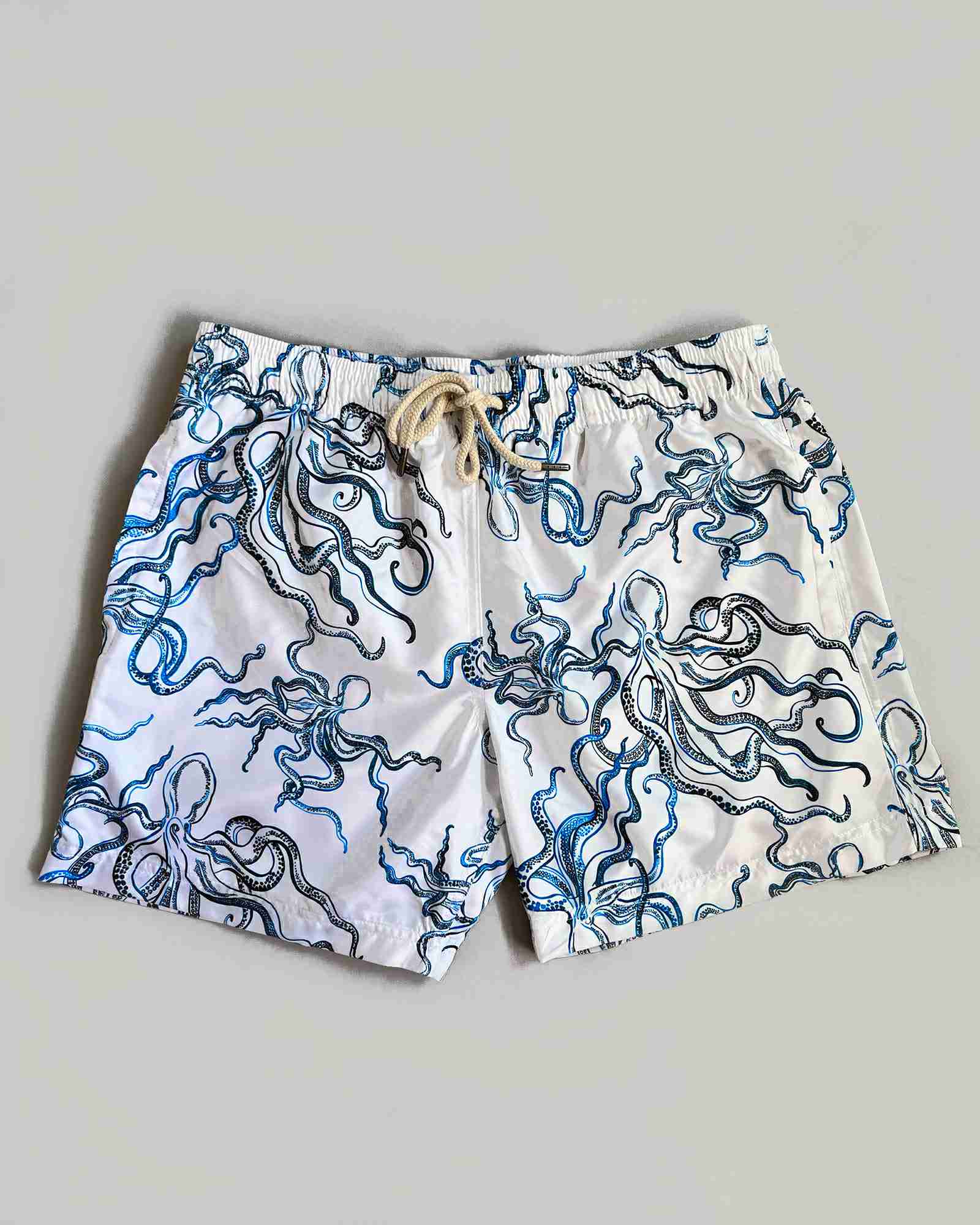 Men’s White Swim Shorts – Octopus Indigo