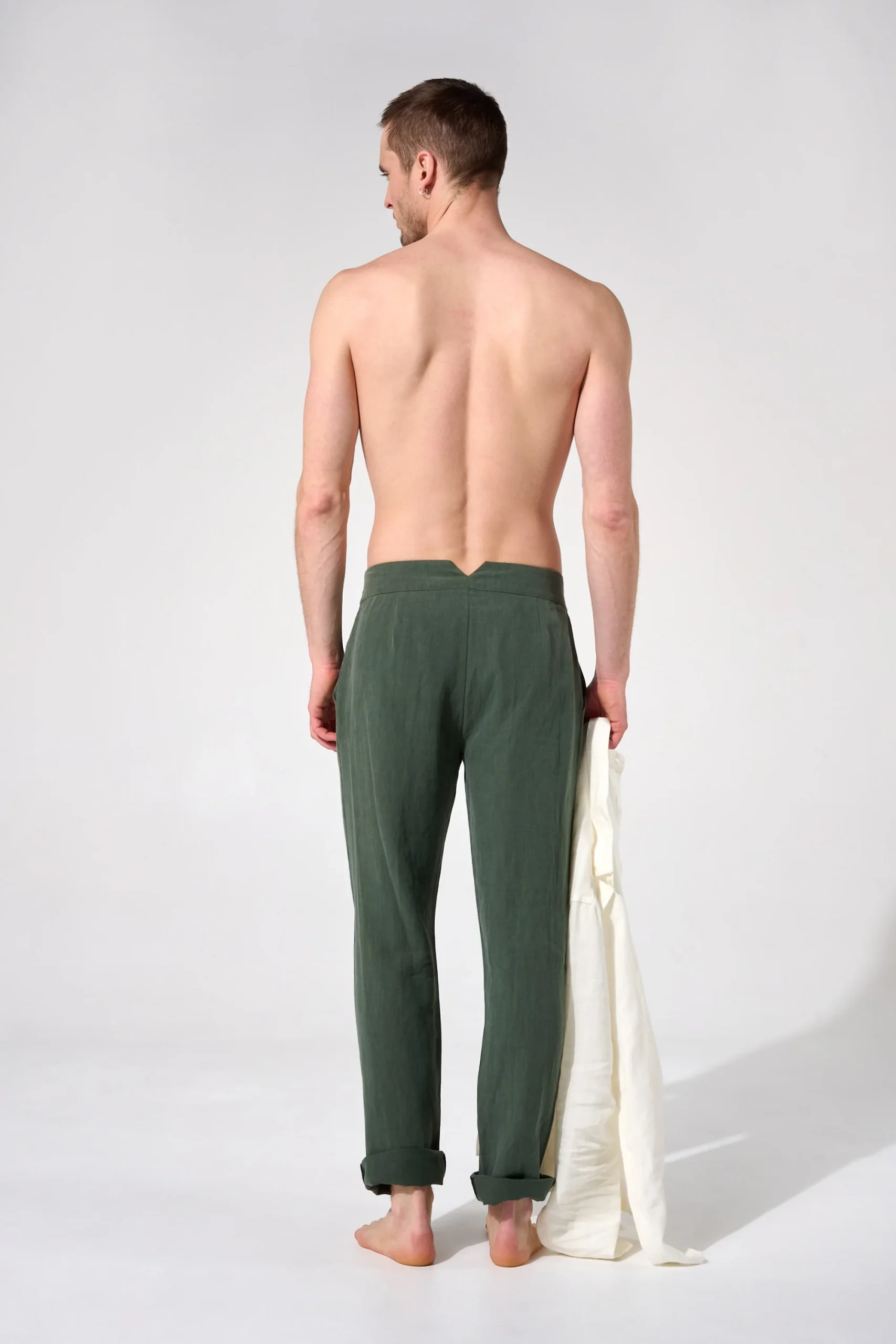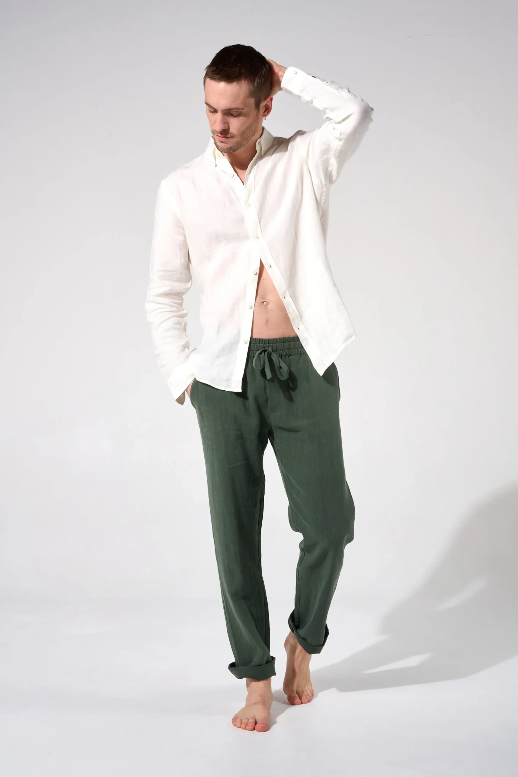 Pantalon léger homme, conçu à partir de lin naturel Européen et de tencel, pour un rendu à la fois chic et décontracté.