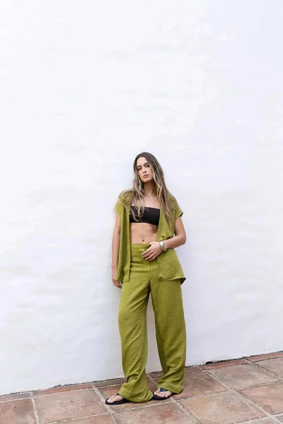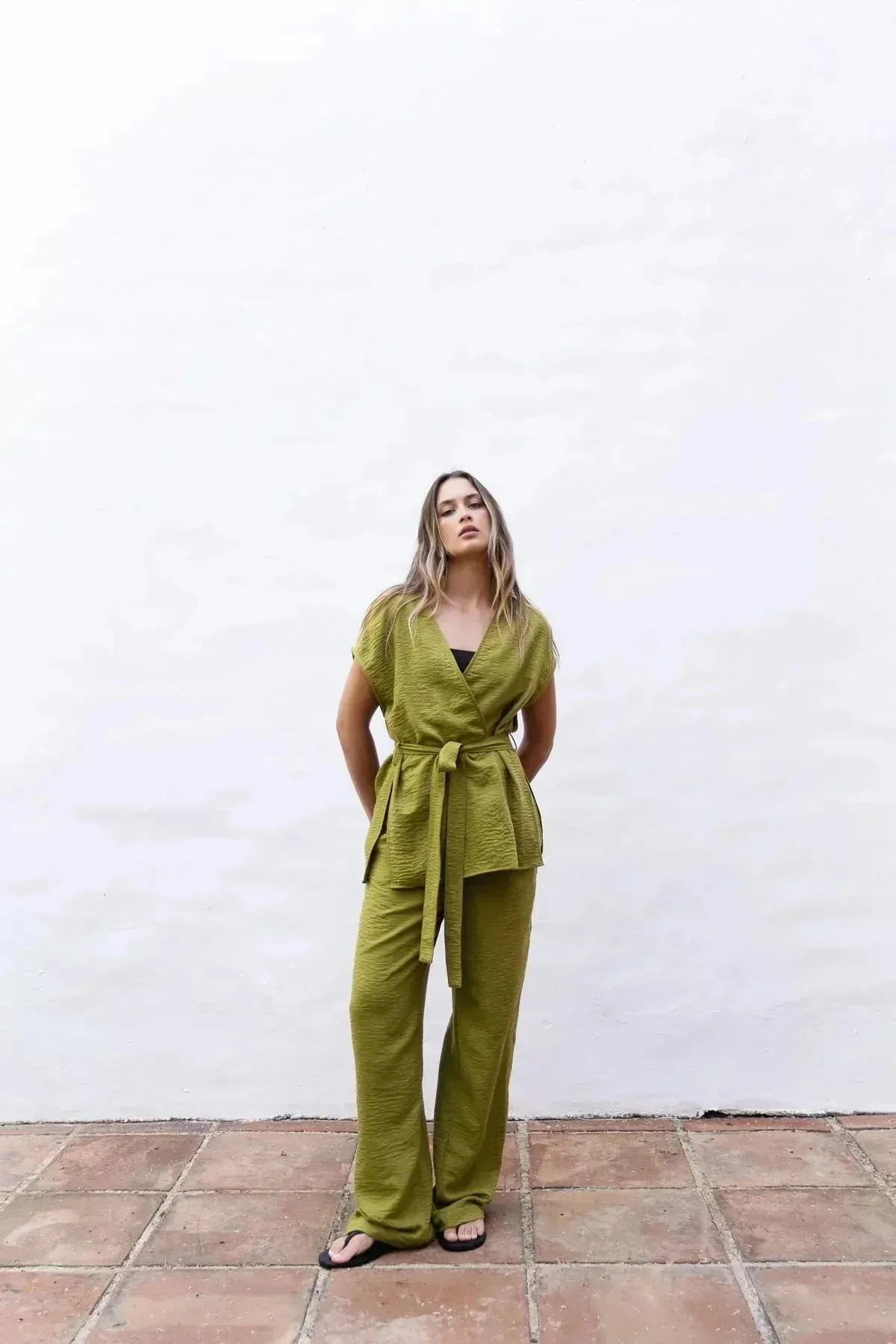 Ne manquez pas l’opportunité d’ajouter ce pantalon fluide vert femme à votre collection. Commandez dès maintenant et optez pour un look à la fois tendance et confortable, offrant une note de fraîcheur avec sa superbe teinte vert olive.
