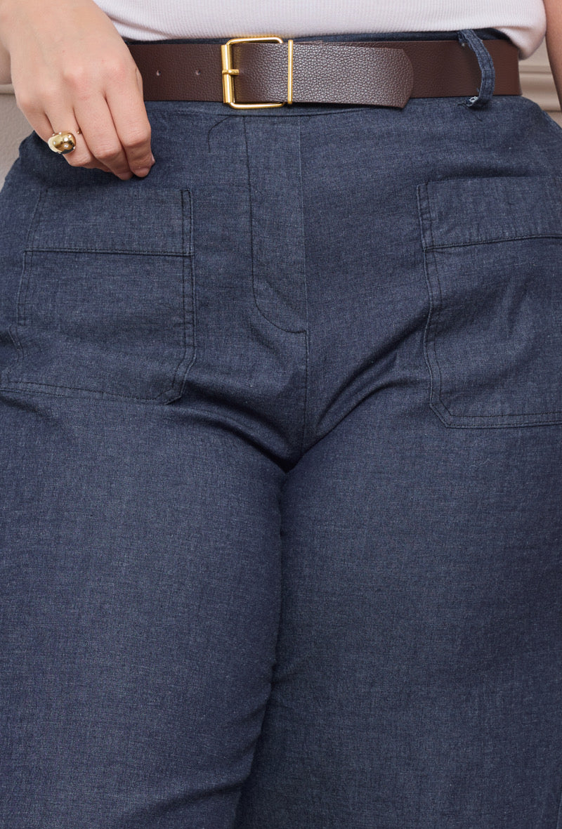 Alliez confort et élégance avec ce pantalon en coton pensé pour sublimer toutes les morphologies. Conçu en taille unique du 44 au 50, il accompagne vos mouvements grâce à sa coupe droite et son tissu léger. Sa teinte bleu denim intemporelle en fait une pièce facile à assortir, idéale aussi bien pour un look décontracté que pour une tenue plus soignée.