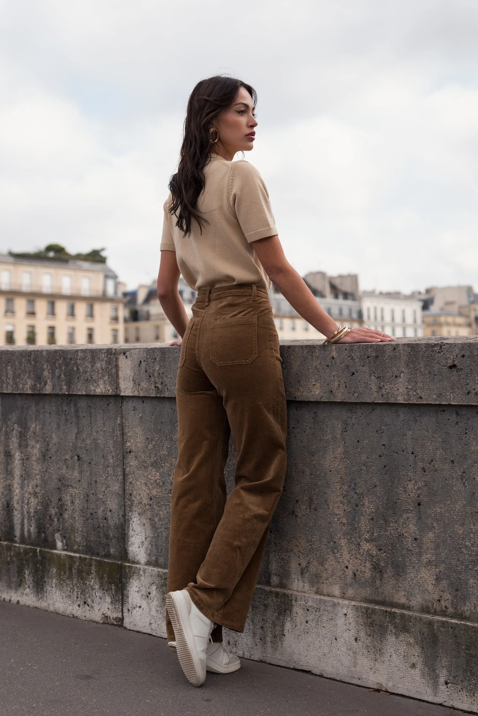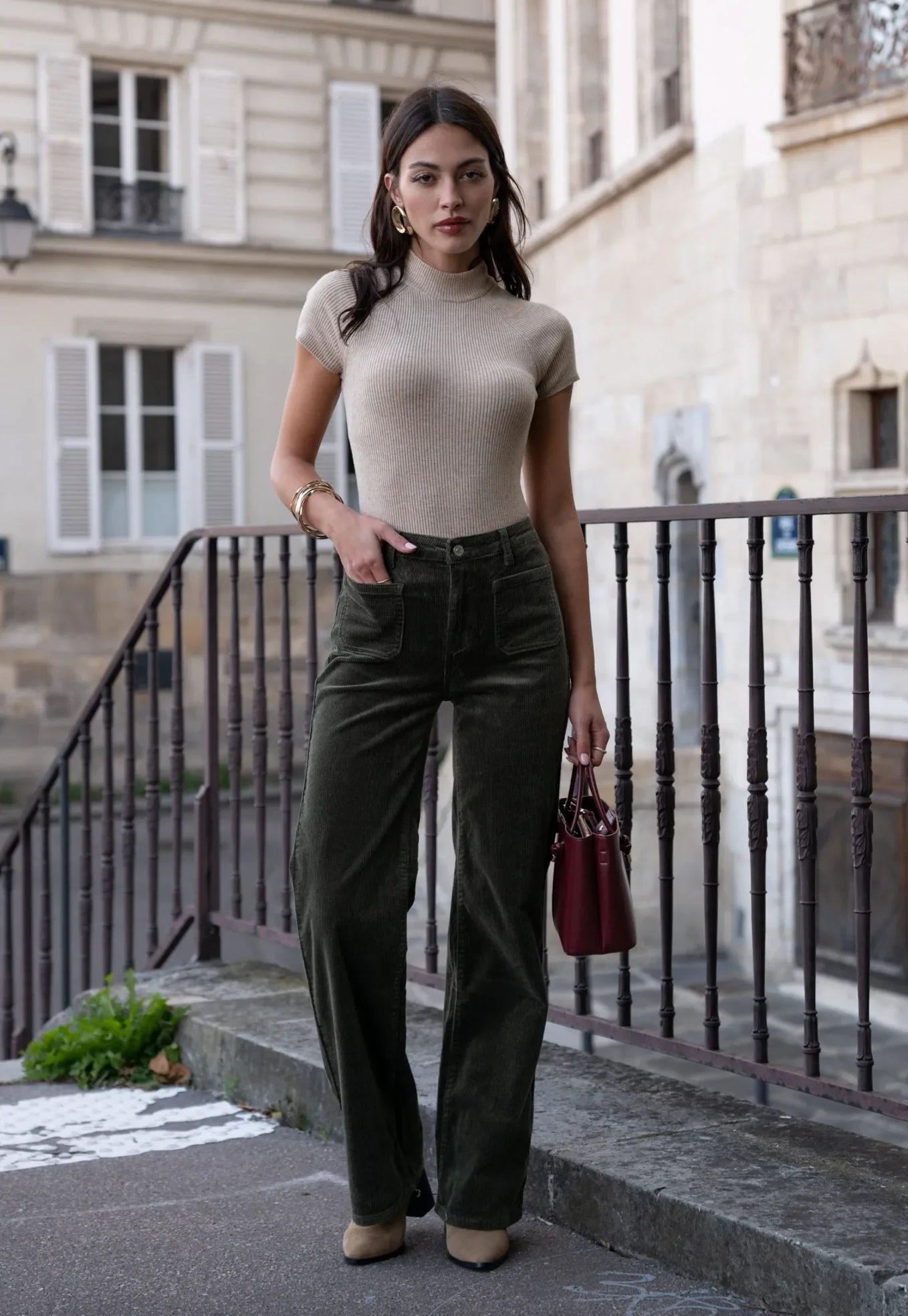 Pantalon en Velours Ce pantalon Sekia est à la fois confortable, élégant et tendance. Avec sa matière en velours côtelé, il vous apportera douceur et chaleur tout en vous donnant une allure sophistiquée. Disponible en beige clair et pistache, il s’adaptera à toutes les occasions et toutes les saisons. Tailles allant du 34 au 42.