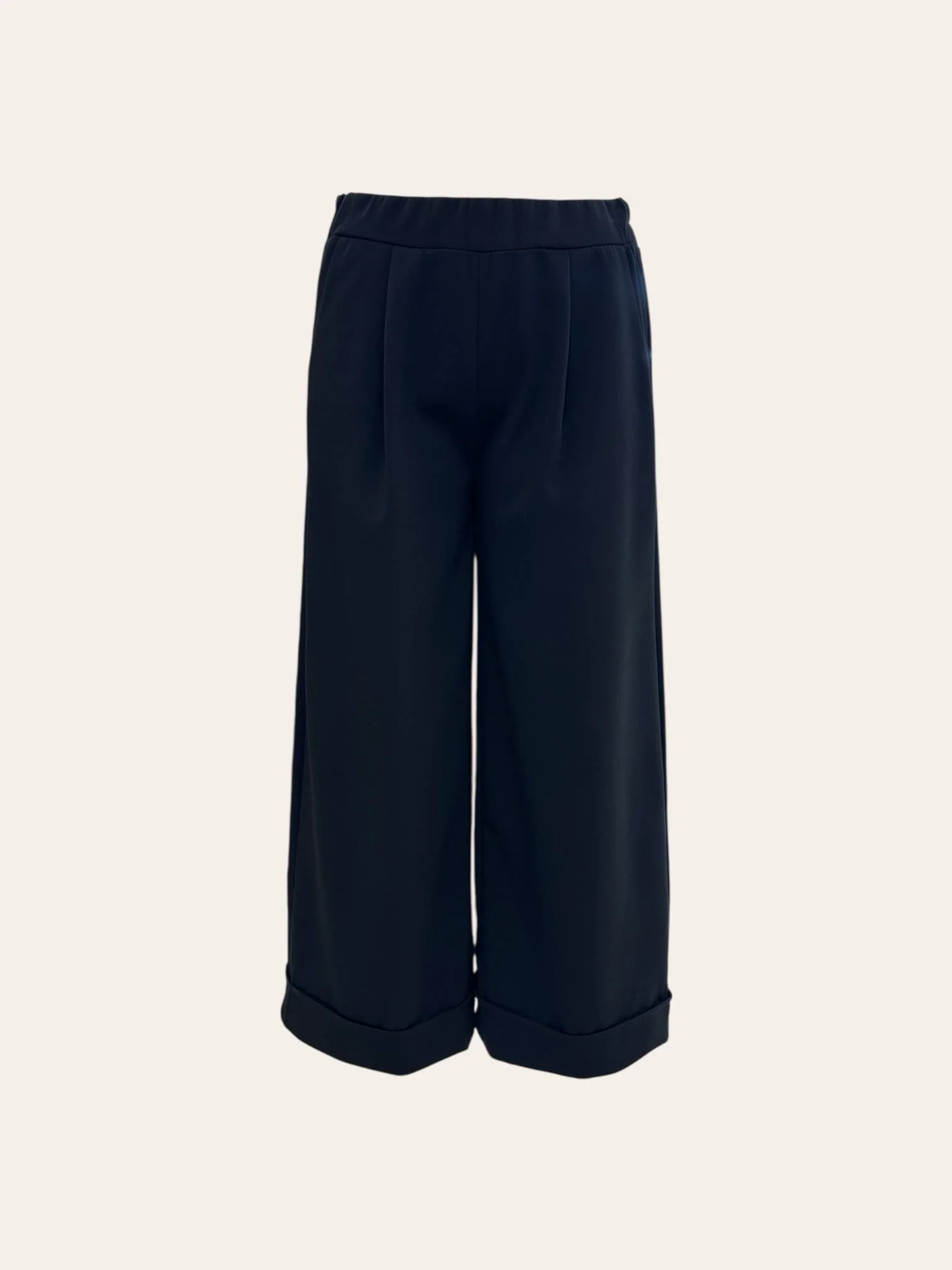 Sa composition (50 % viscose, 45 % polyester, 5 % élasthanne) lui confère douceur, légèreté et élasticité. La viscose apporte un joli tombé fluide, le polyester assure la tenue et l’élasthanne garantit un confort de mouvement optimal. Ses poches latérales pratiques et son revers en bas de jambe ajoutent une touche moderne et décontractée.