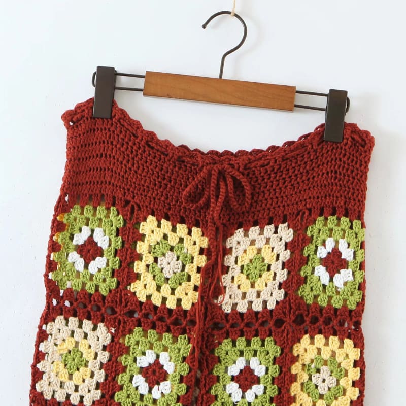 Carrés fleuris assemblés pour ce pantalon en crochet. Ceinture à nouer par cordon à la taille. Très beau mélange de couleurs. Vous allez tomber sous son charme ! Type d’article : pantalon Épaisseur : fin Matériel : coton / acrylique Longueur : long Coupe : classique Style : bohème D’autres motifs pourraient vous inspirer pour une […]