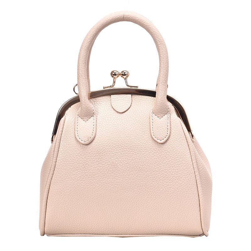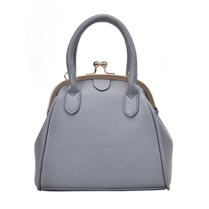 Pochette à main en similicuir, de couleur noire, gris, rose ou rouge. Deux anses rigides et fermeture par boutons qui se croisent. Avoir du style est tellement facile !