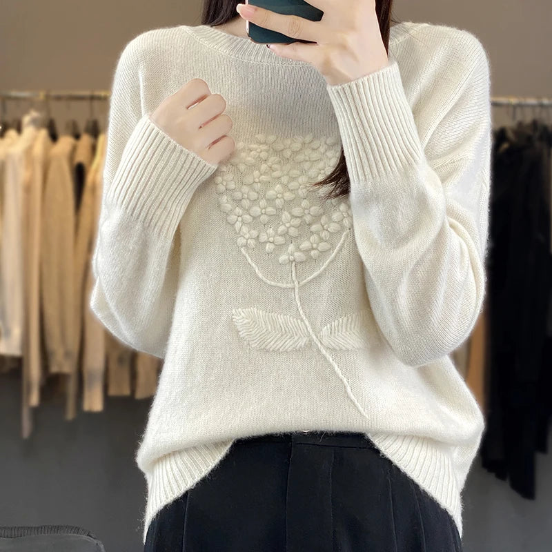 Plonge dans un univers de douceur avec ce pullover fleuri blanc. Parfait pour rehausser ton look avec une touche de féminité. Parce que tu le vaux bien!