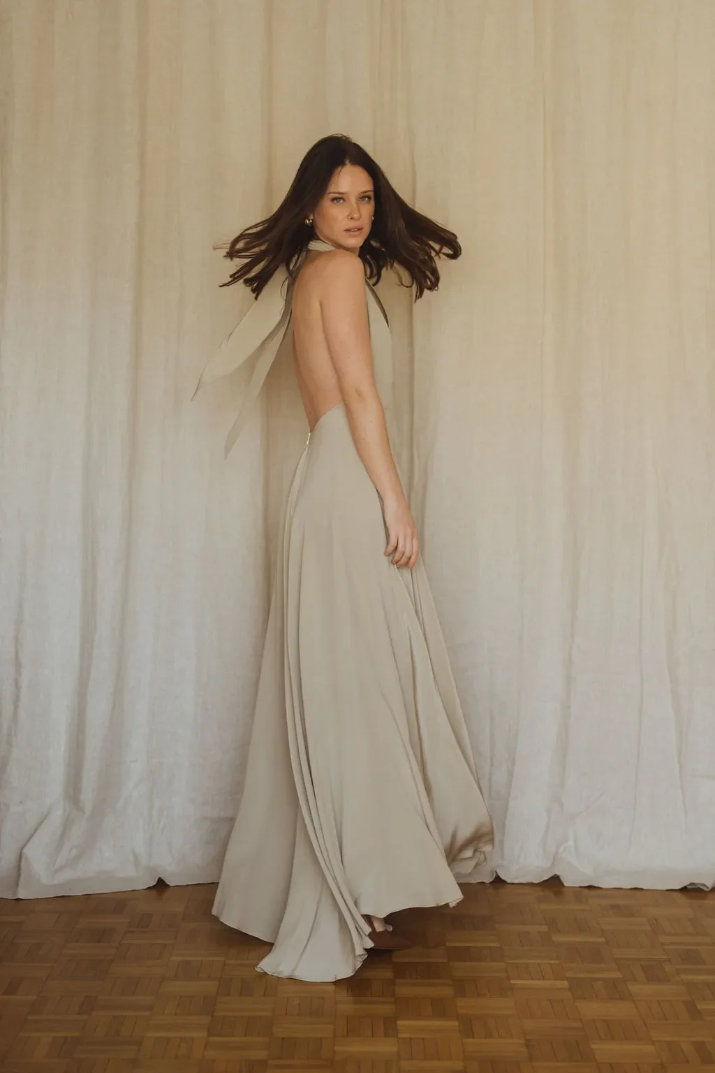 La robe dos nu longue beige clair en soie – Idylle :