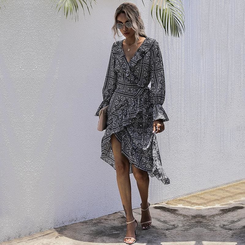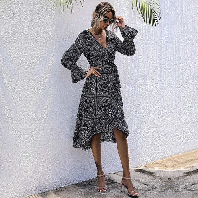 Cette jolie robe en cache-cœur, pourrait vous orienter vers la robe bohème manche longue qui est tout aussi belle. Il y a d’autres robes en cache-cœur dans les robes longues bohème si vous aimez ce type de modèle. Cette robe vous offre un type de motifs bandanas, les robes bohème en composant aussi d’autres. Le style de vêtements bohème comporte pas mal de motifs bandanas.