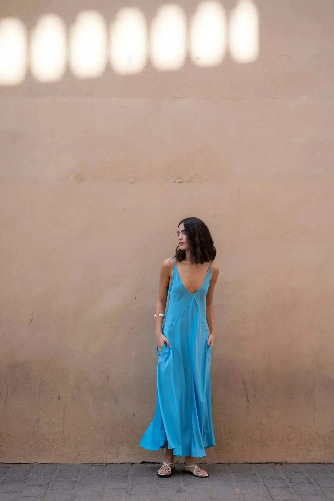 - Polyvalence : Cette robe longue bretelles fines s’associe aussi bien avec des sandales pour un look décontracté qu’avec des escarpins pour une allure plus habillée.
