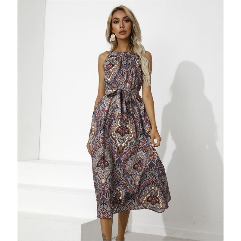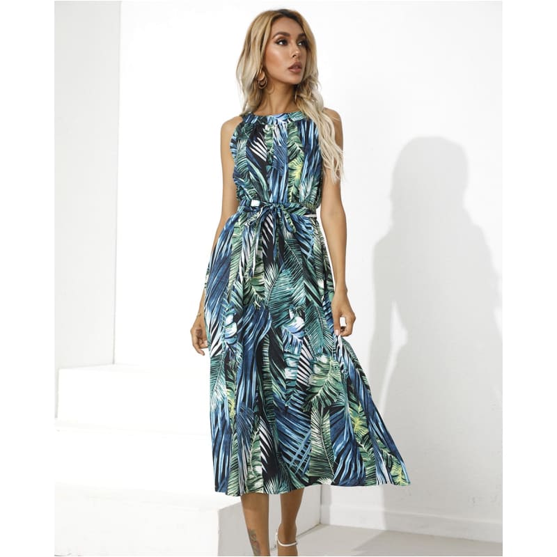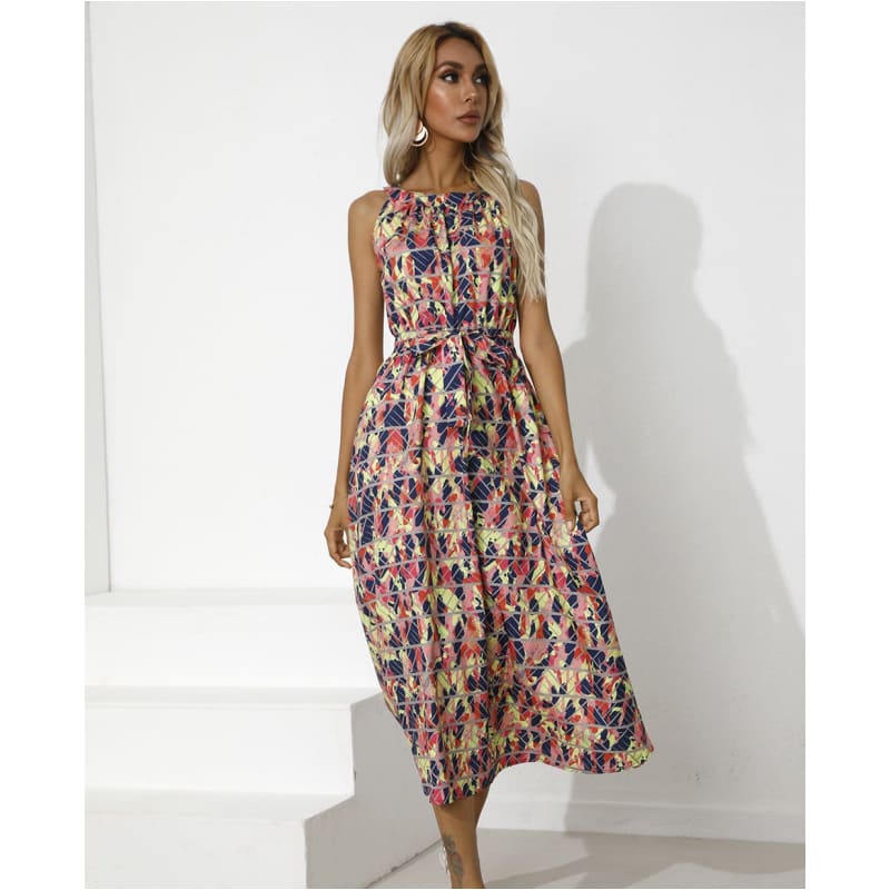 Choix de motifs et de coloris pour cette robe mi-longue avec son encolure ronde et ses épaules dégagées. Une ceinture à nouer vient marquer la taille de cette robe ample et légère.