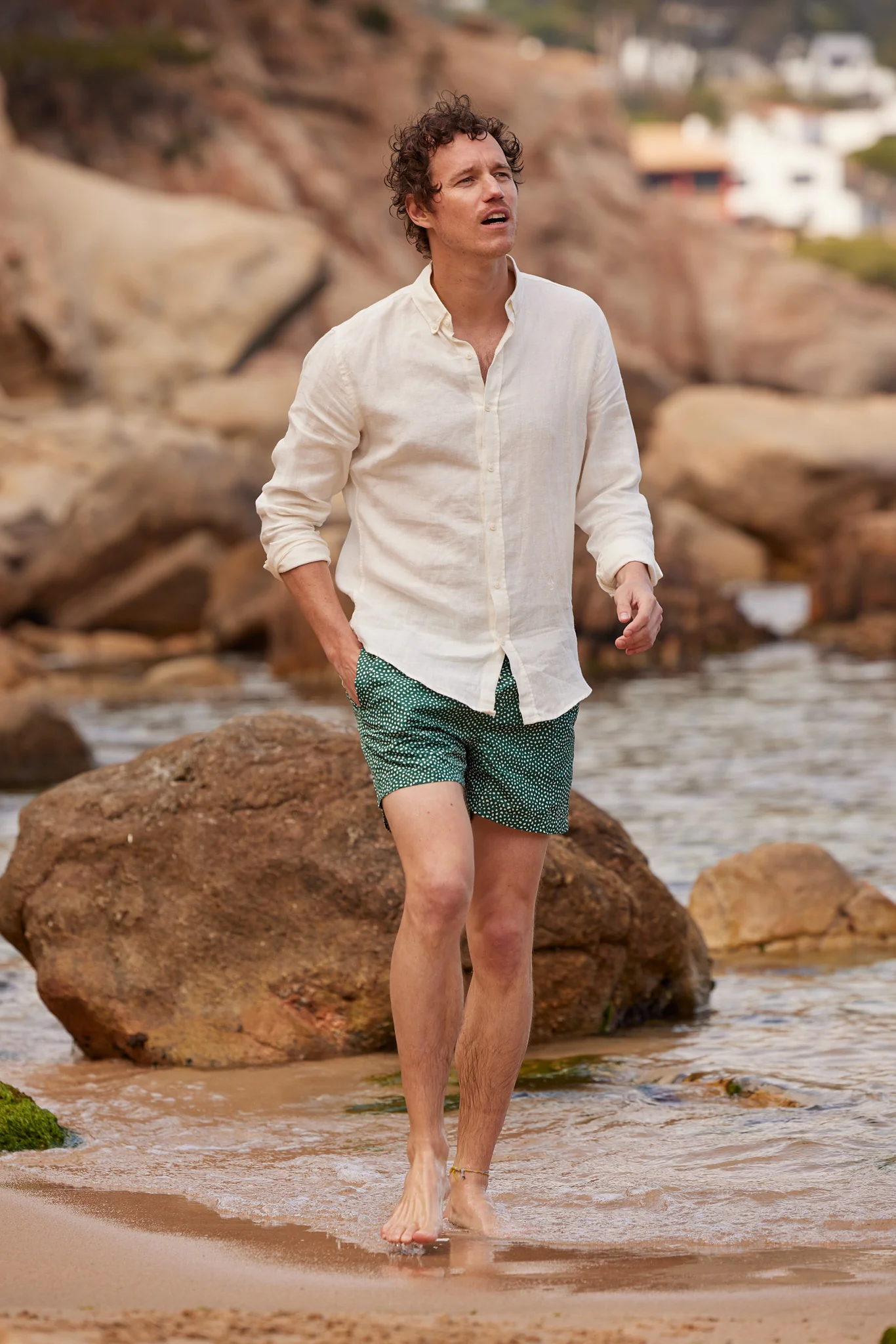 Maillot de bain homme 100% recyclé à partir de 10 bouteilles en plastique. Sébastien mesure 1m93 et porte le maillot en L.Si vous hésitez entre deux tailles, optez pour celle du dessus.