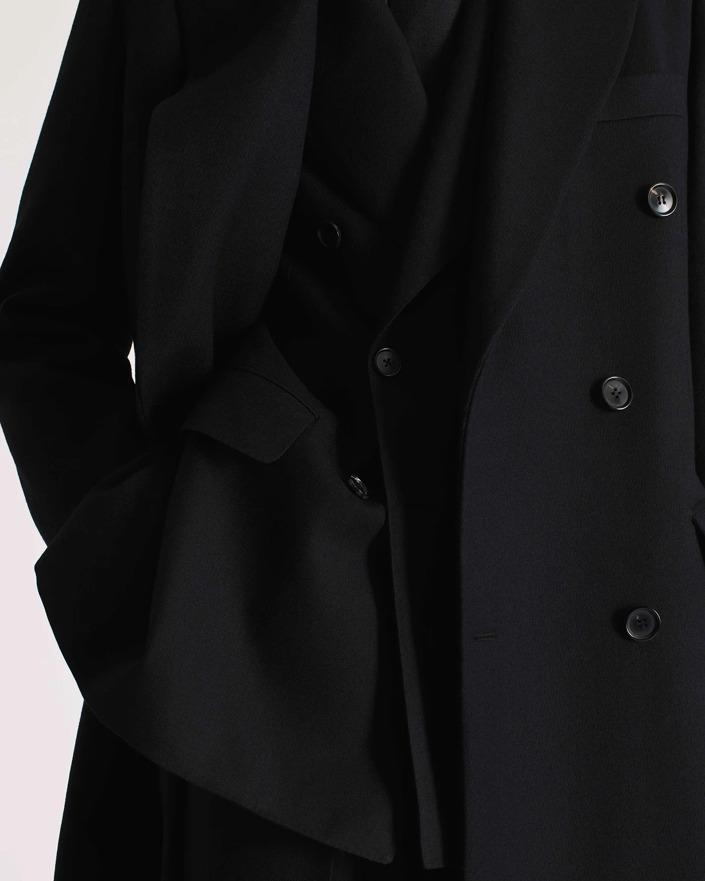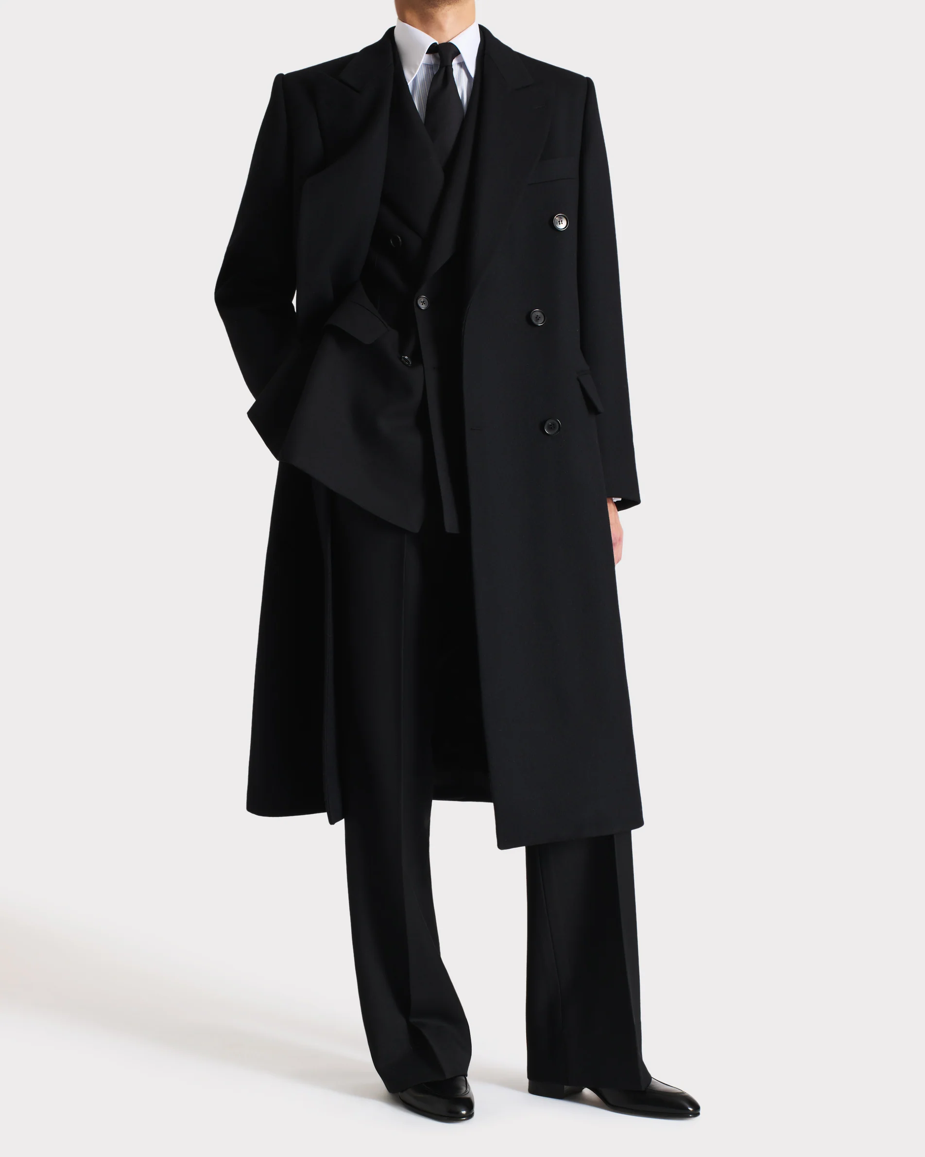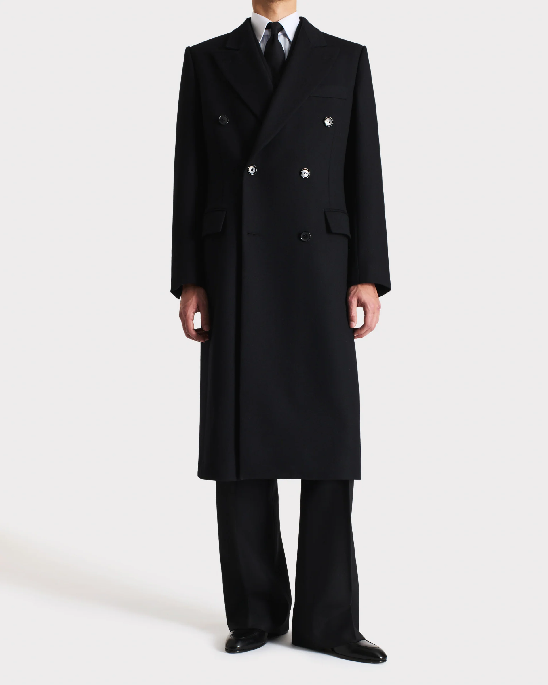 manteau croisé six boutons, coupe classique, en sergé cavalerie de laine vierge italienne