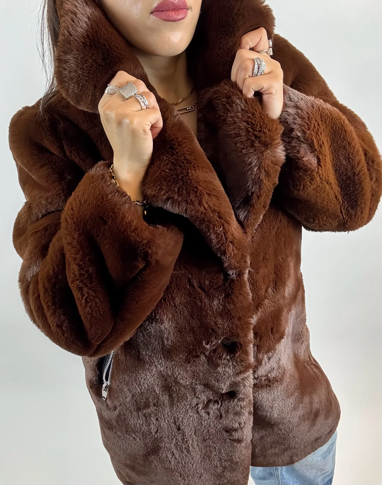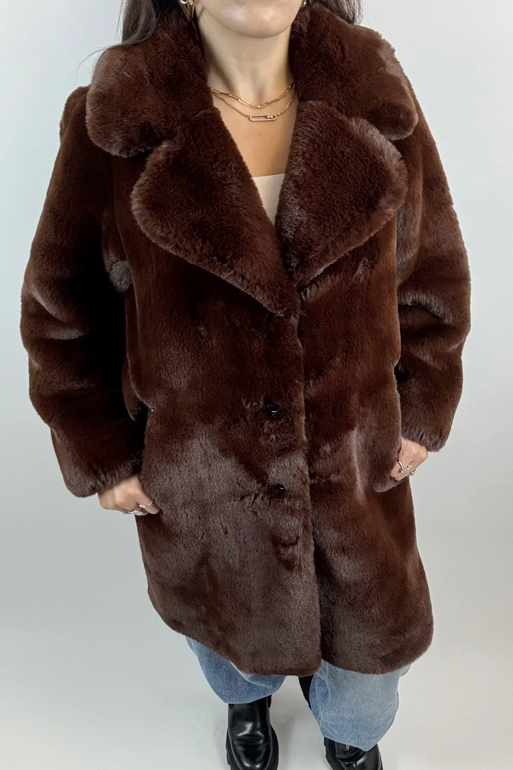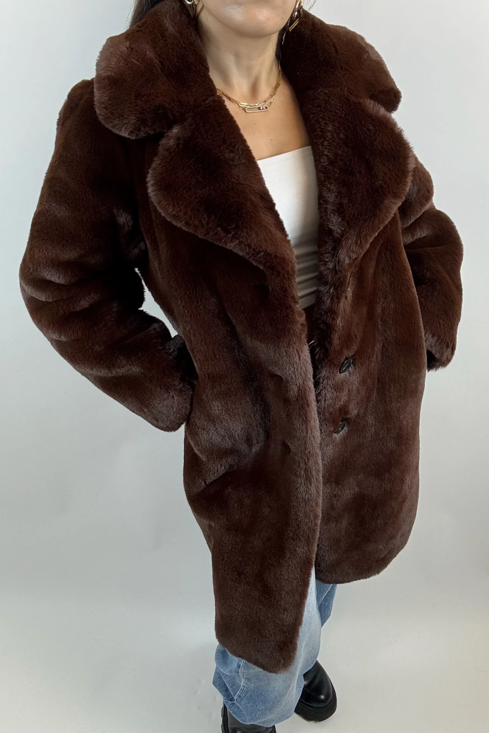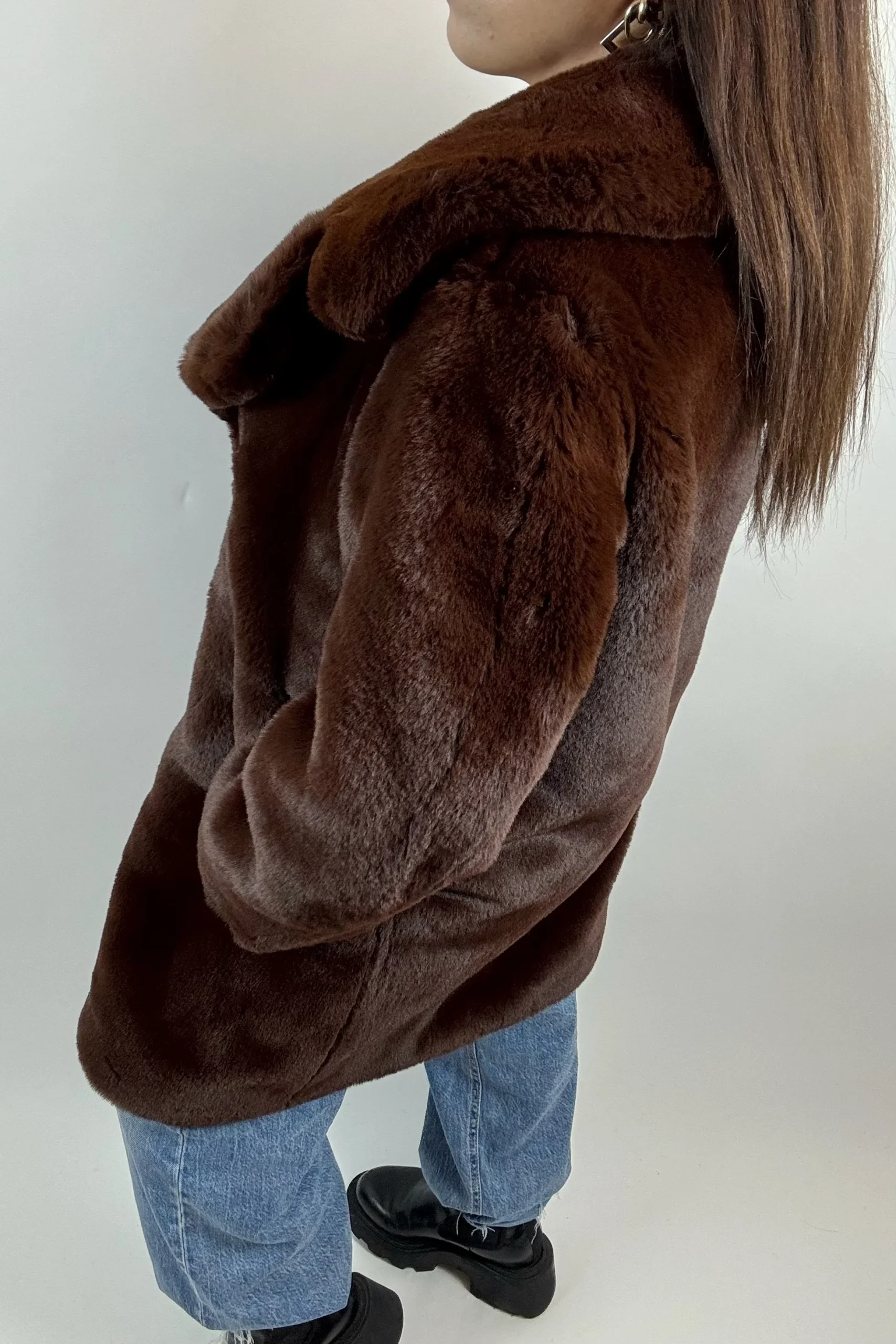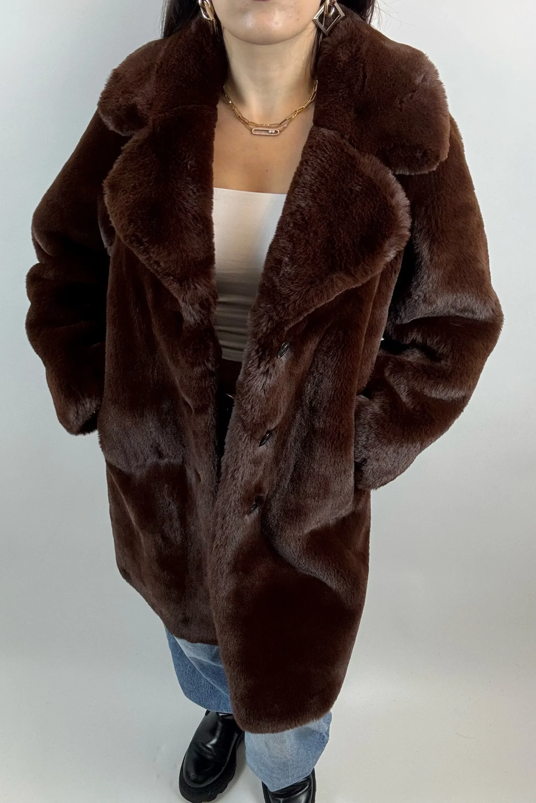 THE KOOPLES Manteau Long en Fausse Fourrure Marron – Tendance et Élégant