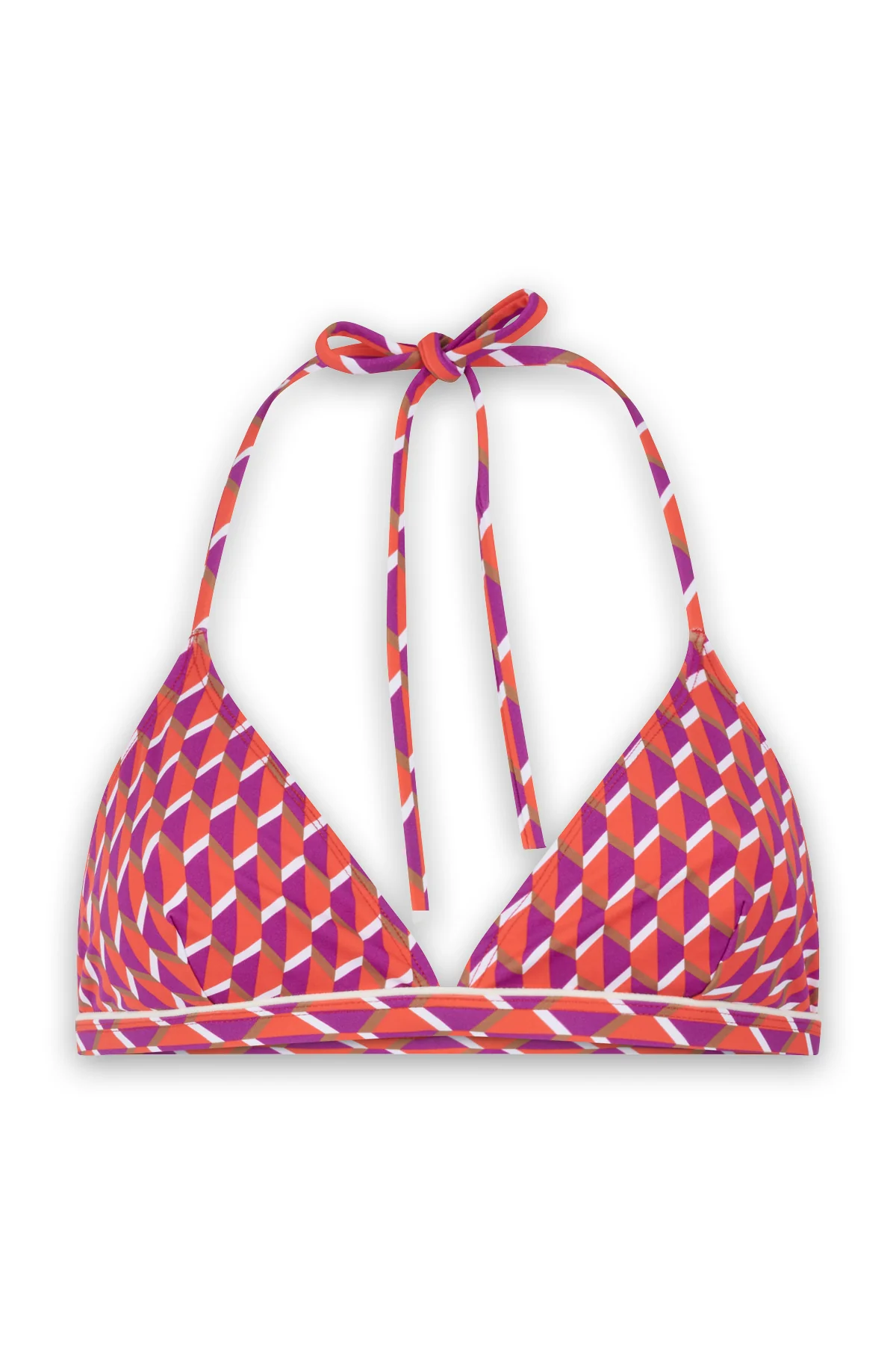 Un soutien-gorge triangle sans armatures à nouer autour du cou et qui assure un bon maintien.