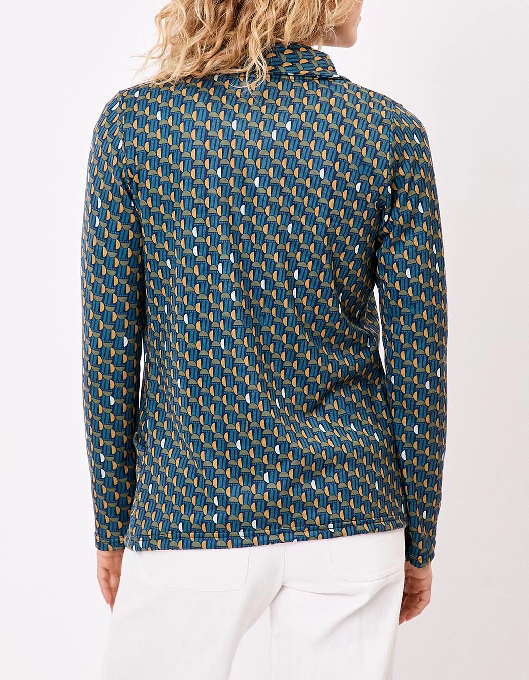 Polyvalente, elle se porte aussi bien au bureau que pour une sortie entre amies. Superposée sur un haut uni, elle devient l’élément fort de votre look. Son imprimé aux tons marins et dorés en fait un choix parfait pour illuminer les tenues automne-hiver.