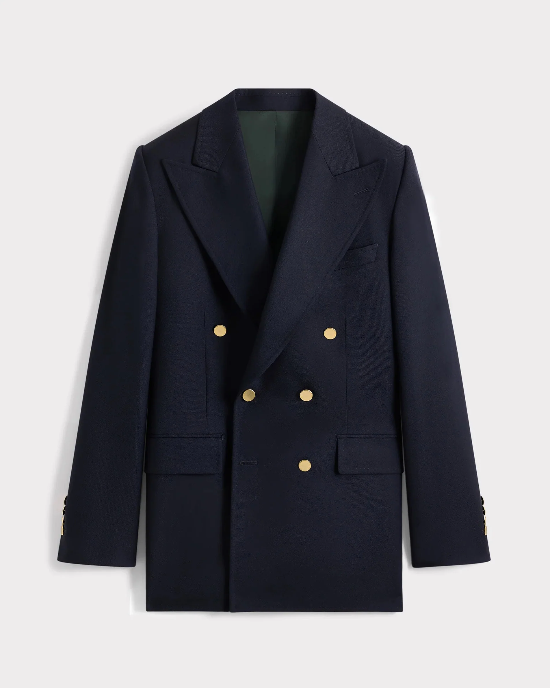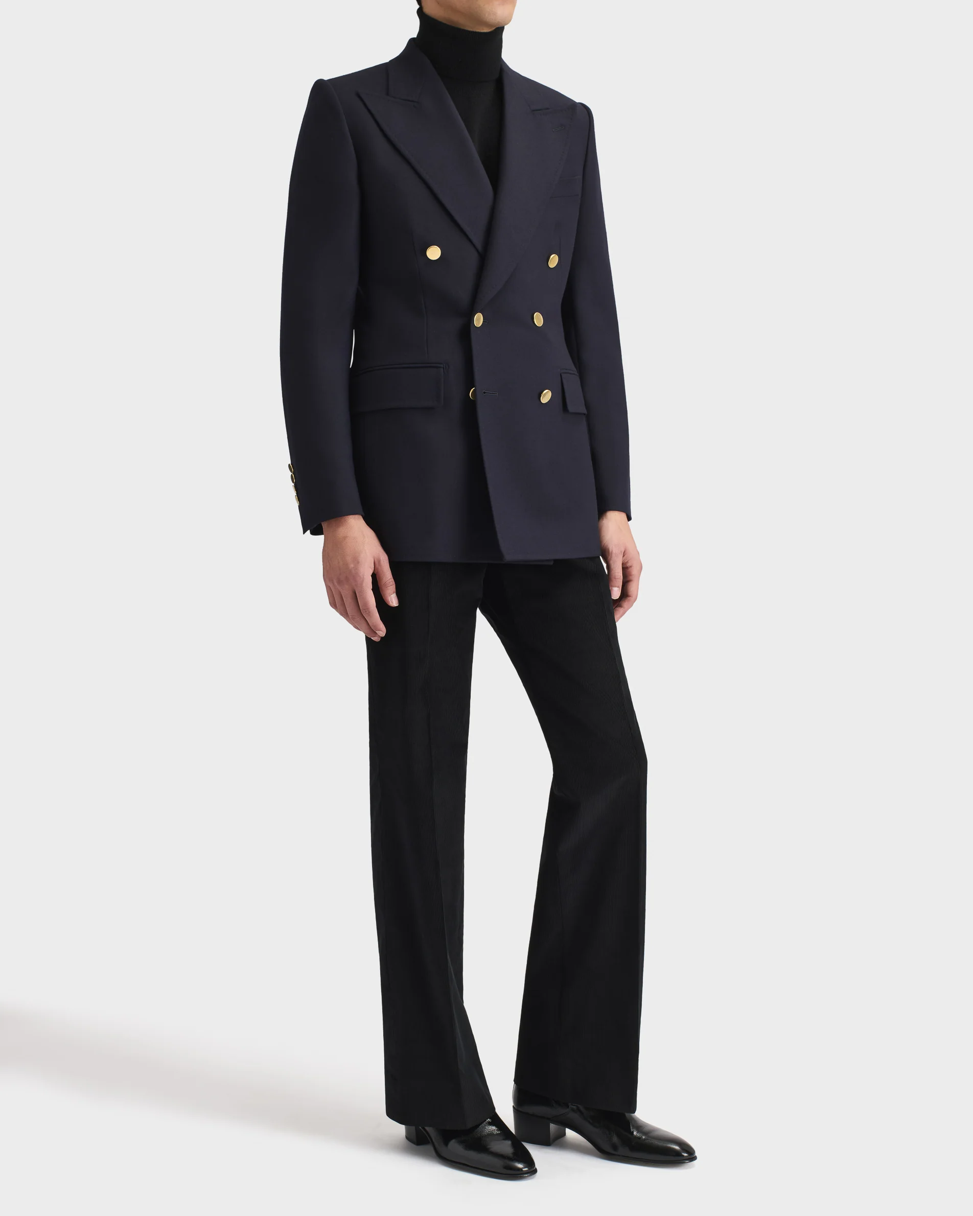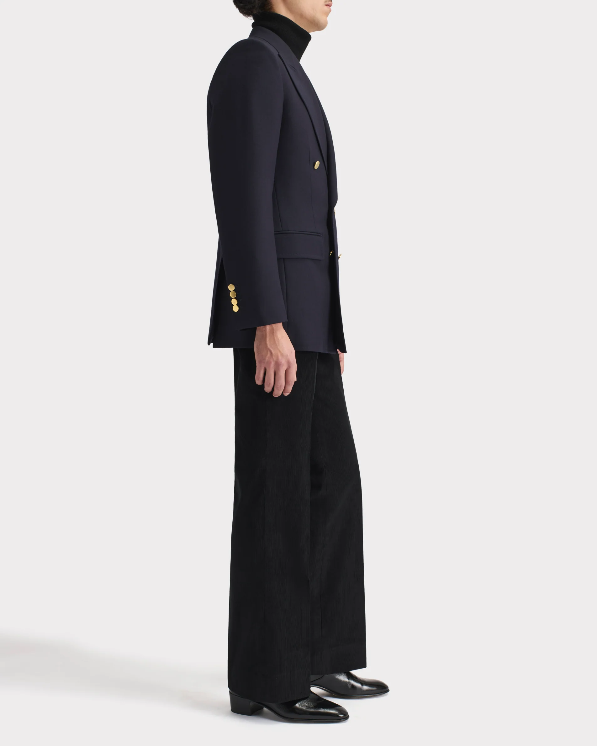 VESTE CROISÉE EN SERGÉ DE LAINE – BLEU MARINE