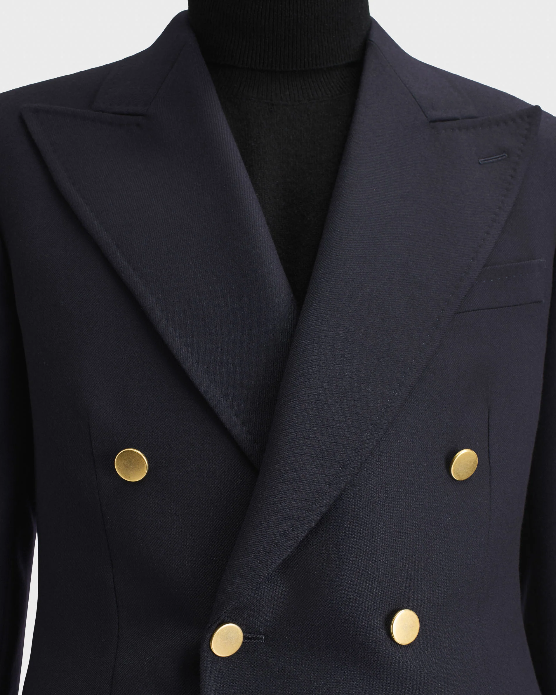Veste croisé six boutons coupe classique, en sergé de laine anglais.