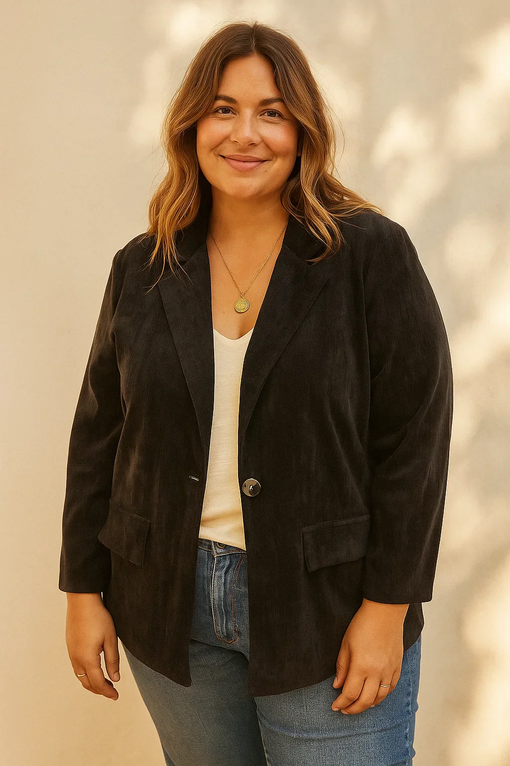 Porte-la avec un jean évasé grande taille ou un pantalon fluide de la collection grandes tailles Hippie Chic pour un look à la fois confortable, moderne et féminin.