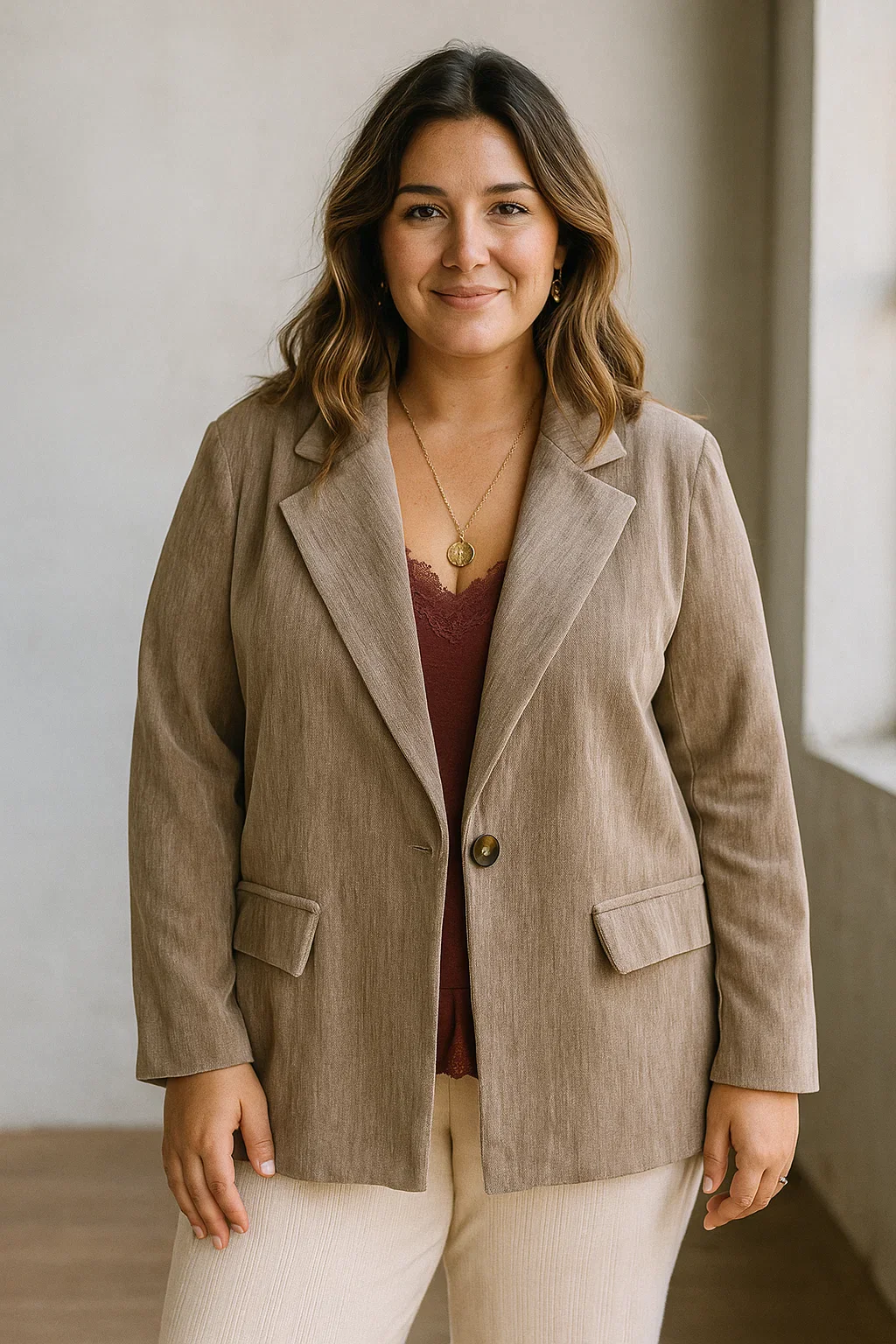Blazer coton femme bordeaux et marron, coupe élégante
