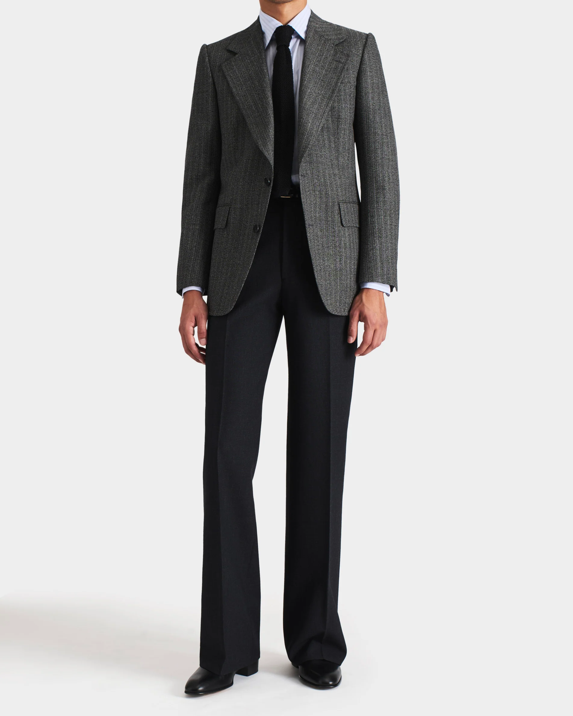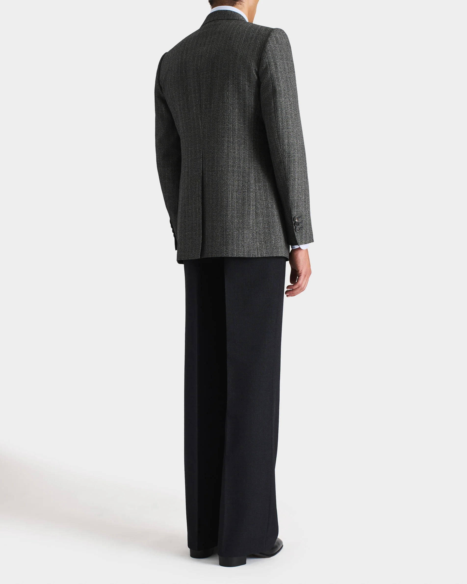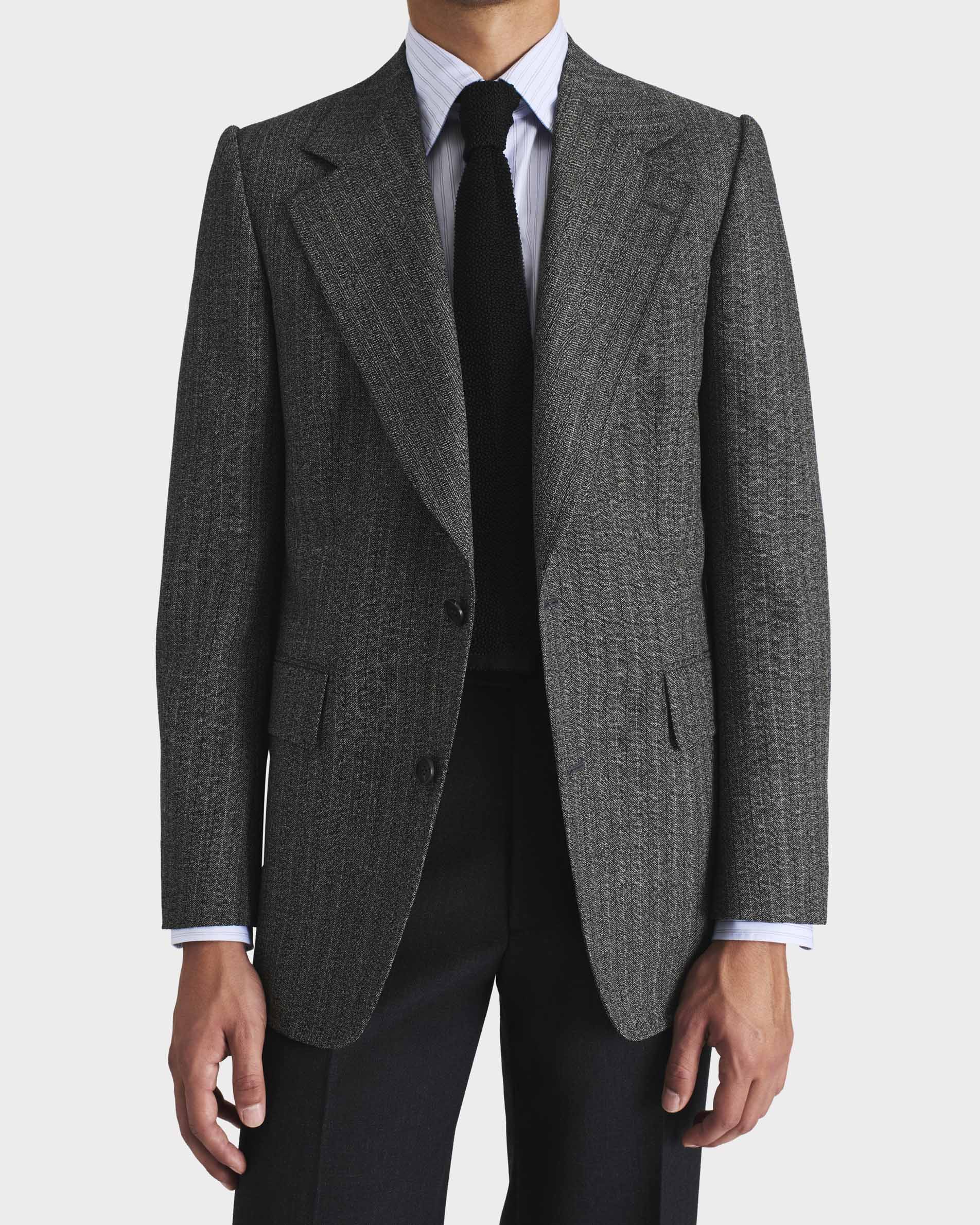 VESTE DROITE EN SERGÉ DE LAINE ET MOHAIR 2-PLY – CHEVRONS NOIR ET GRIS