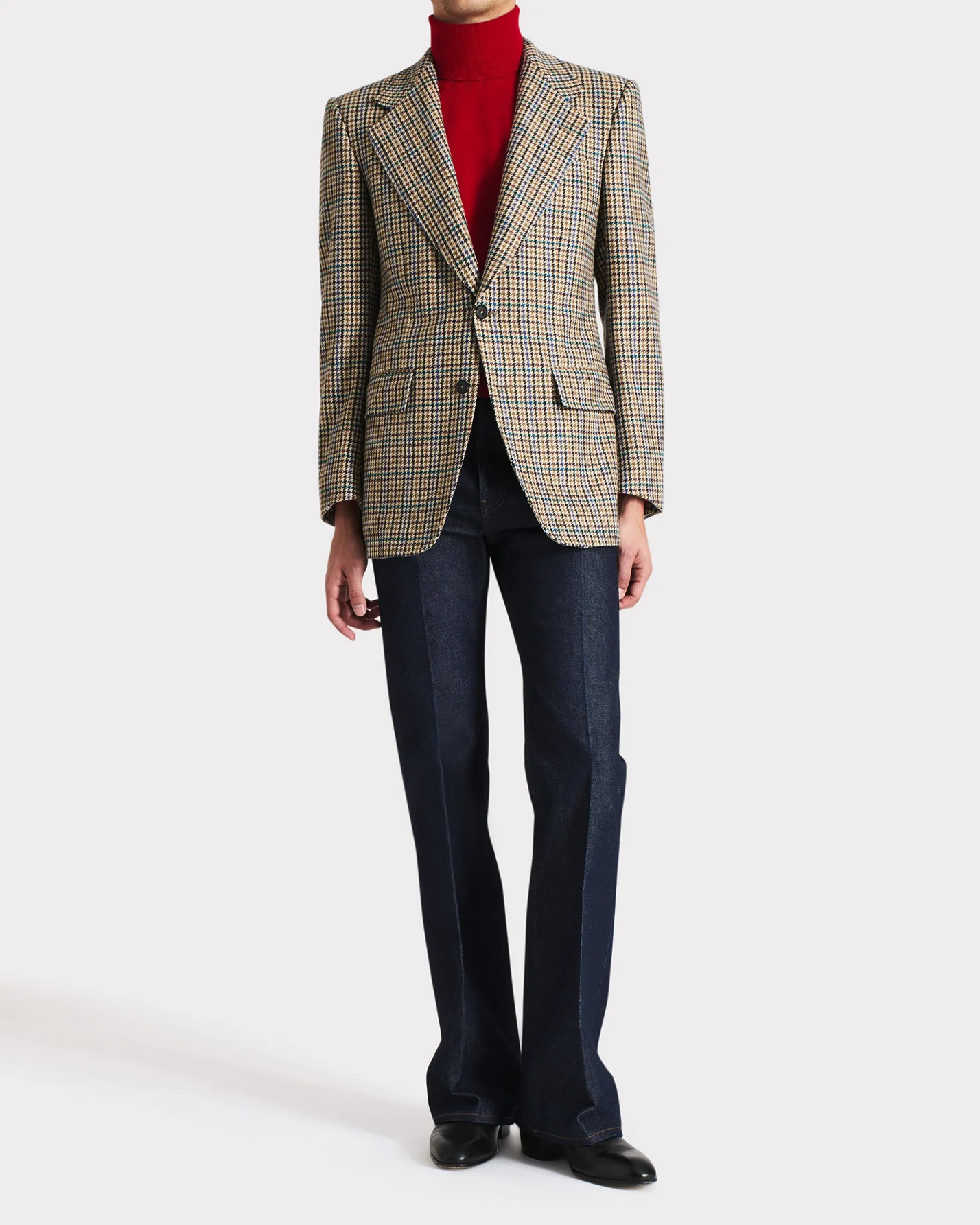 VESTE DROITE EN SERGÉ DE LAINE – PIED-DE-POULE MULTICOLORE
