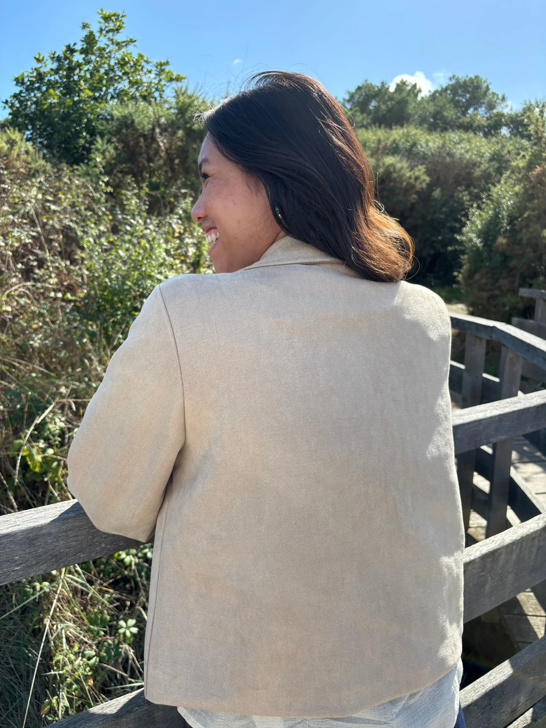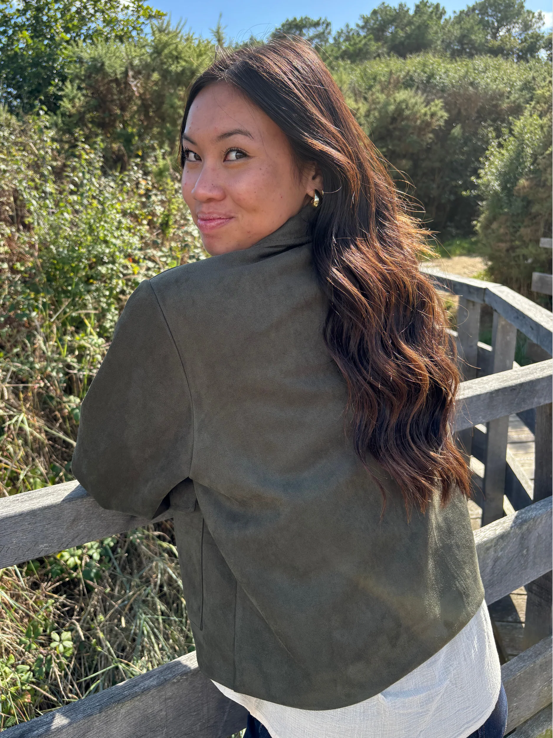 Apportez une touche élégante et moderne à vos looks avec cette veste en suédine douce, disponible en taille unique (36-42) et déclinée en plusieurs coloris. Sa matière souple et confortable en fait une pièce idéale pour la mi-saison.