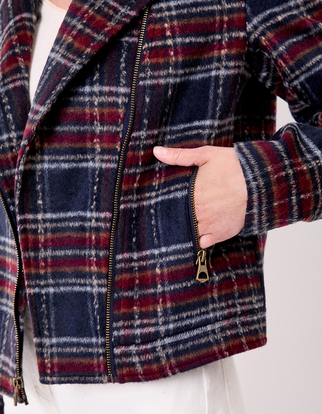Cette veste courte façon perfecto est la pièce parfaite pour allier confort, chaleur et style. Confectionnée en 70 % polyester, 20 % acrylique et 10 % laine, elle offre une matière souple et chaude, idéale pour affronter les journées fraîches avec élégance. Son imprimé Wakisa à carreaux apporte une touche bohème chic et tendance, facile à intégrer dans le vestiaire automne-hiver.