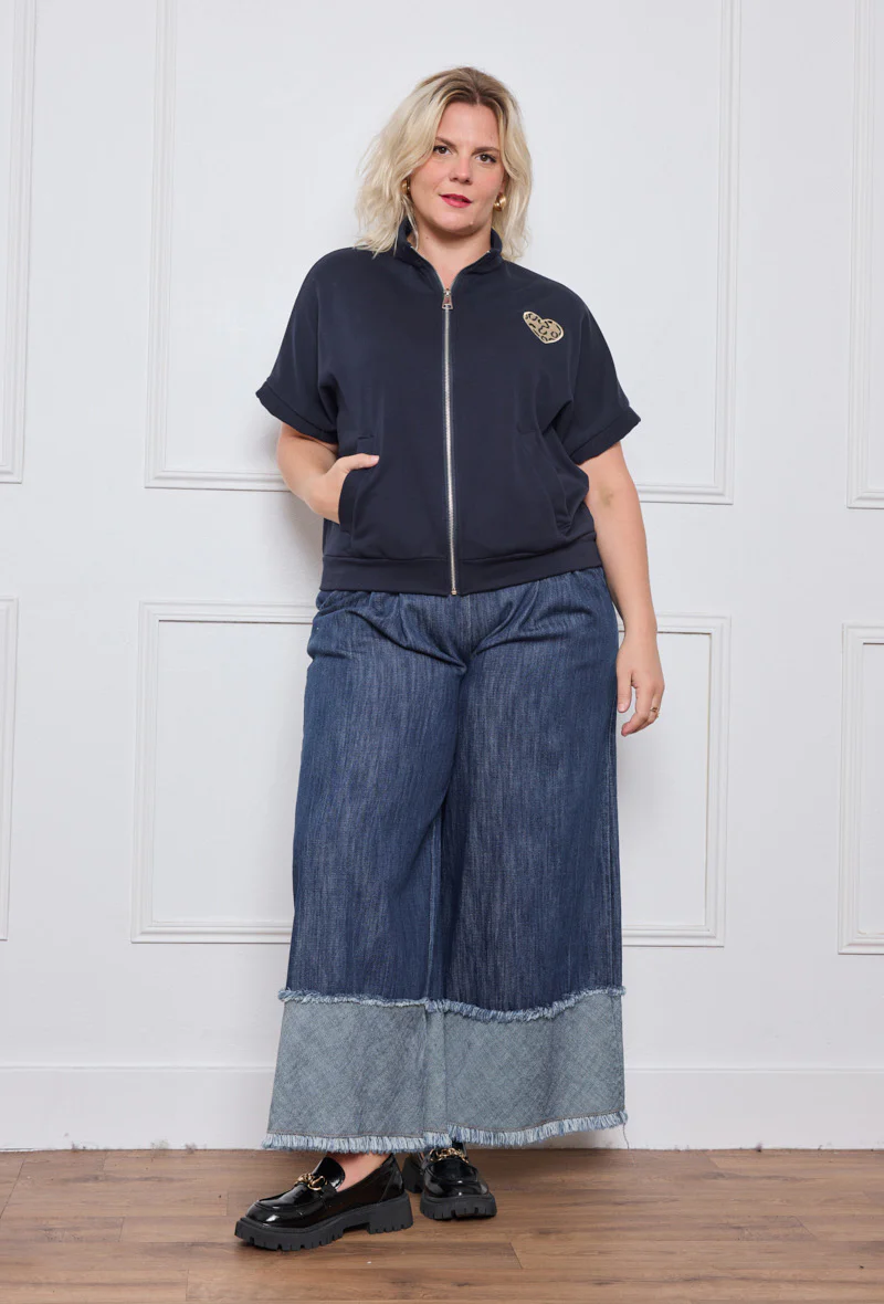 Portez cette veste sur un tee-shirt basique pour un style décontracté, ou avec une blouse imprimée de notre collection grandes tailles pour une allure plus féminine. Elle se marie aussi parfaitement avec une jupe longue pour un contraste original.
