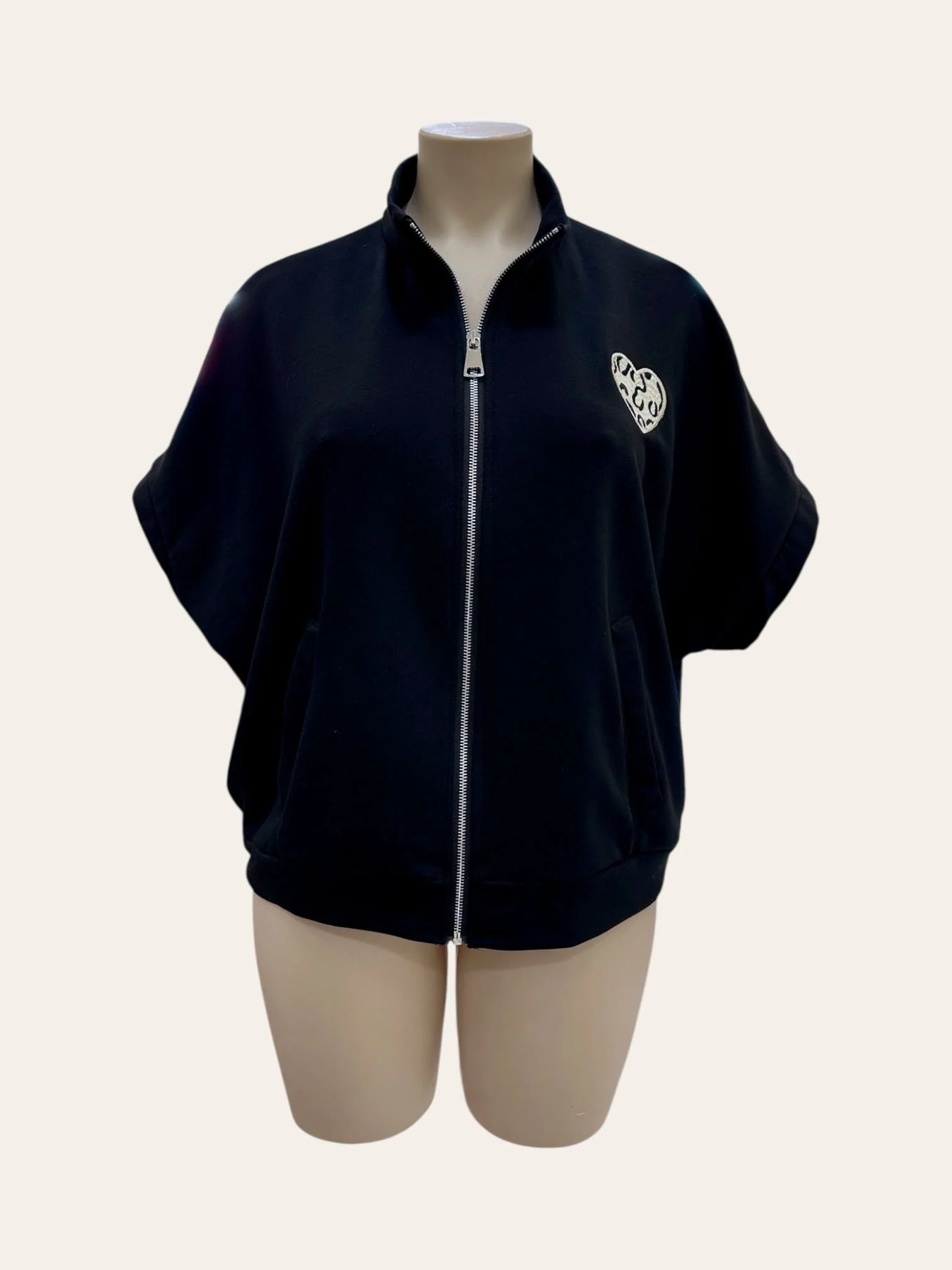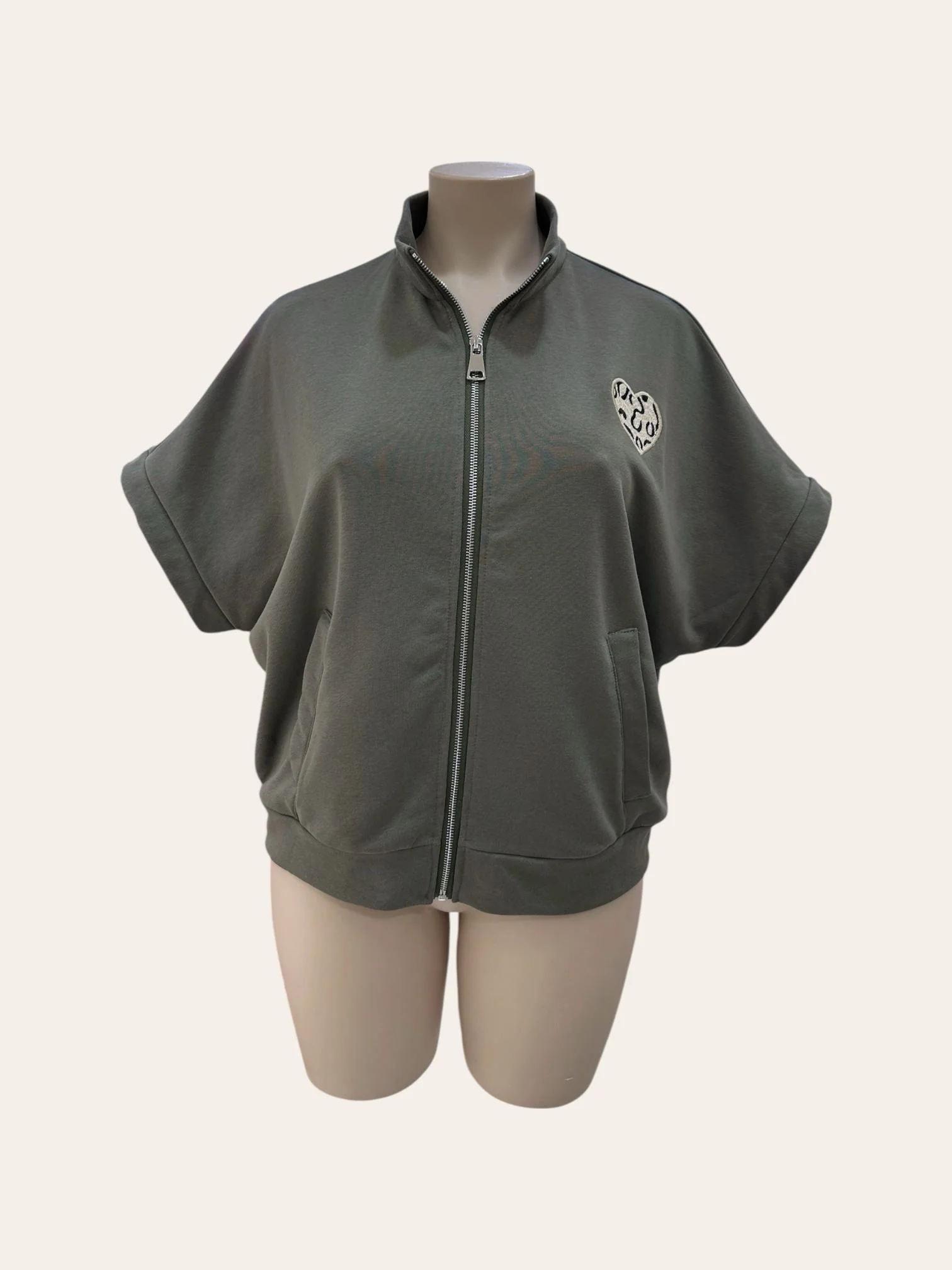 Cette veste femme grande taille combine confort et tendance avec son design zippé, ses manches courtes retroussées et son motif cœur imprimé léopard sur la poitrine. Conçue en taille unique du 44 au 50, elle s’adapte parfaitement aux silhouettes généreuses grâce à sa coupe ample et sa matière souple.