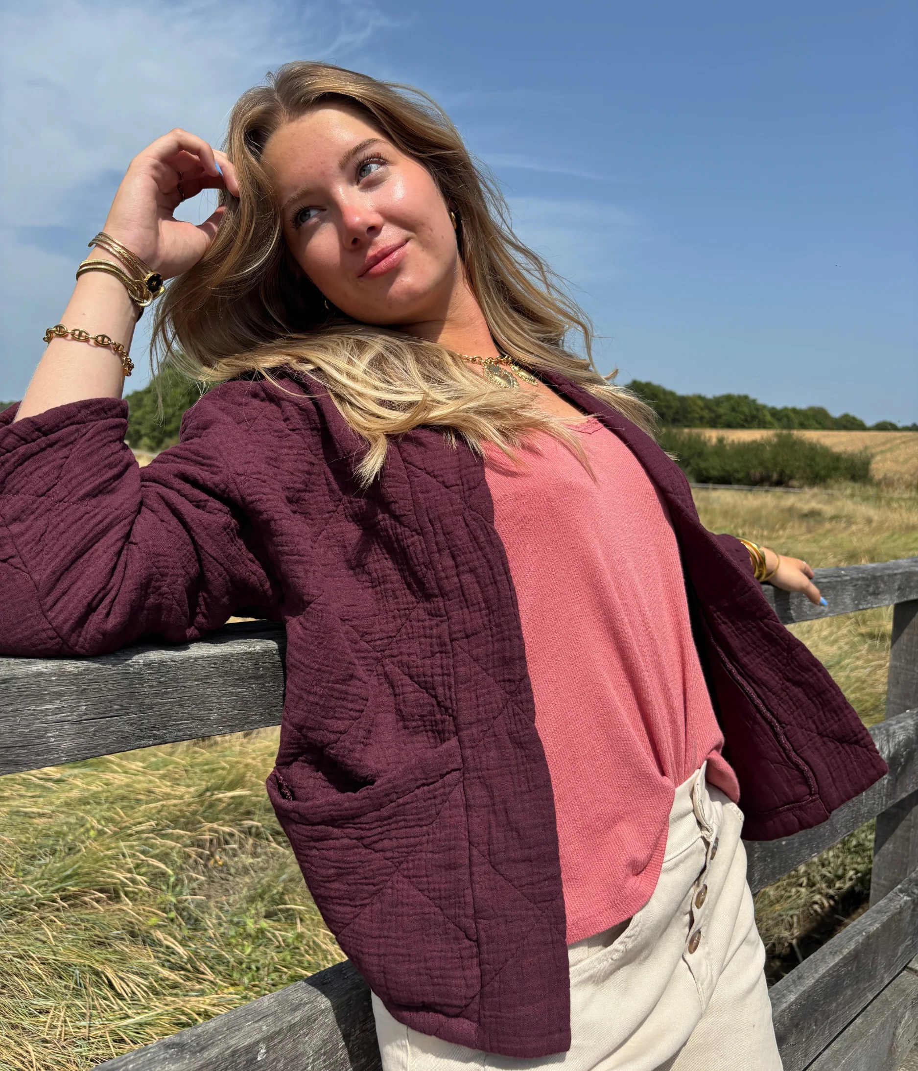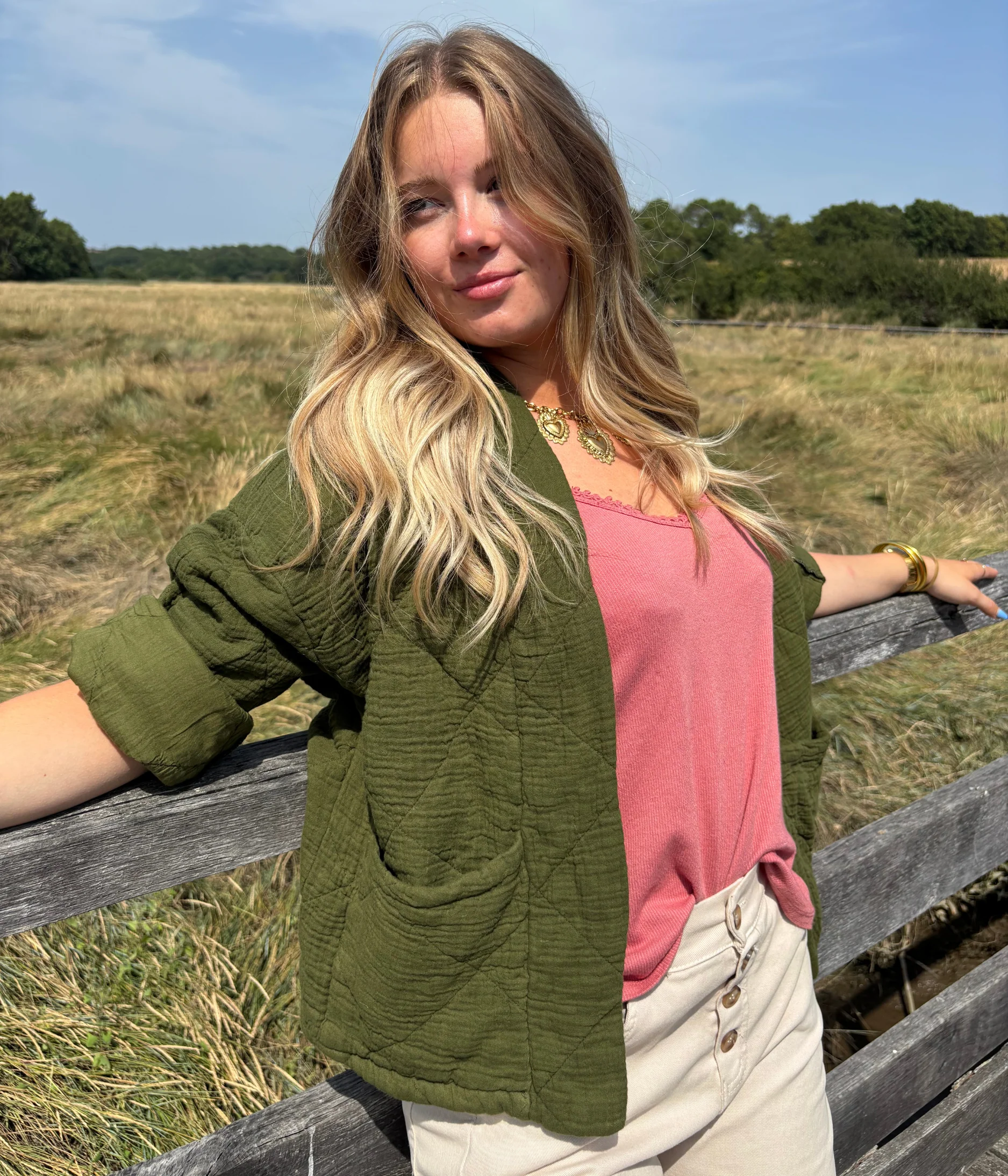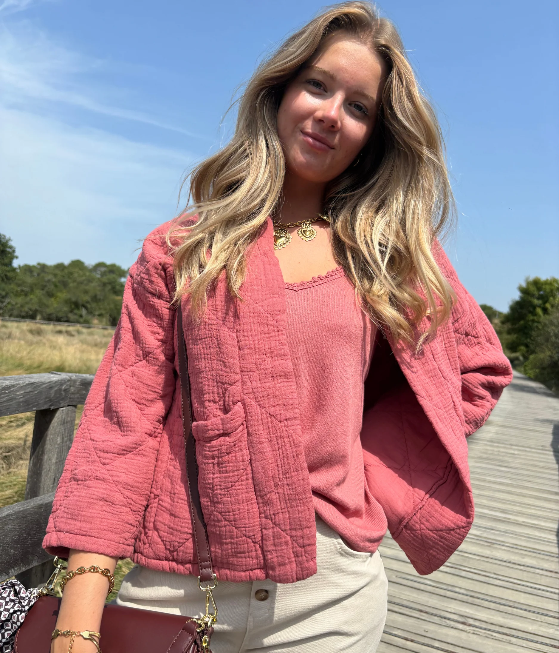 Cette veste matelassée en coton, disponible en plusieurs coloris, est une pièce idéale pour adopter un style bohème décontracté sans faire l’impasse sur le confort. Sa matière 100 % coton légèrement gaufrée lui donne une texture naturelle et un tombé souple. Son matelassage discret crée du relief tout en apportant douceur et chaleur, parfaite pour les journées fraîches de mi-saison.